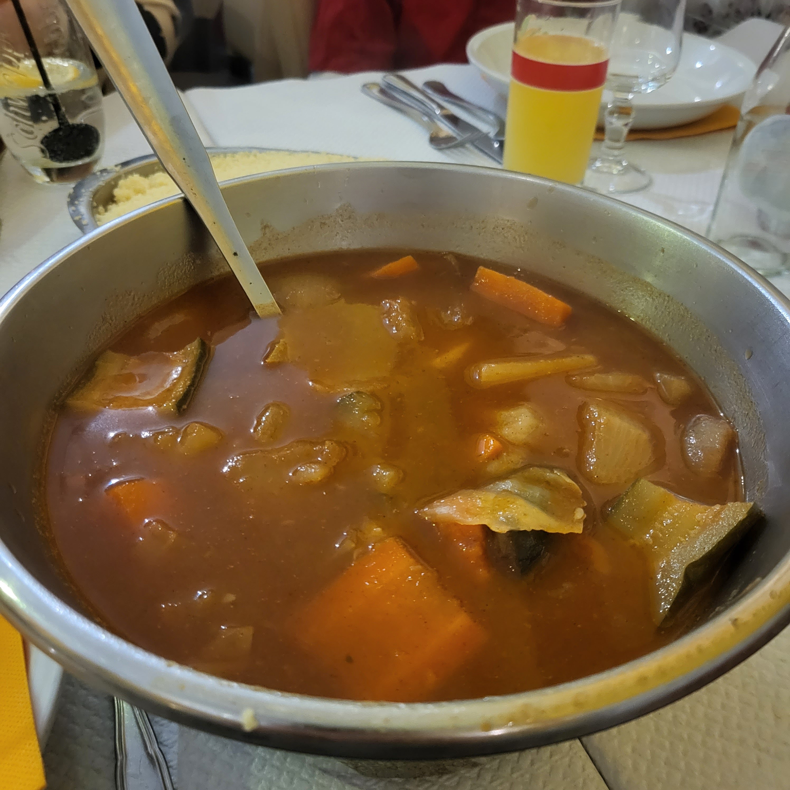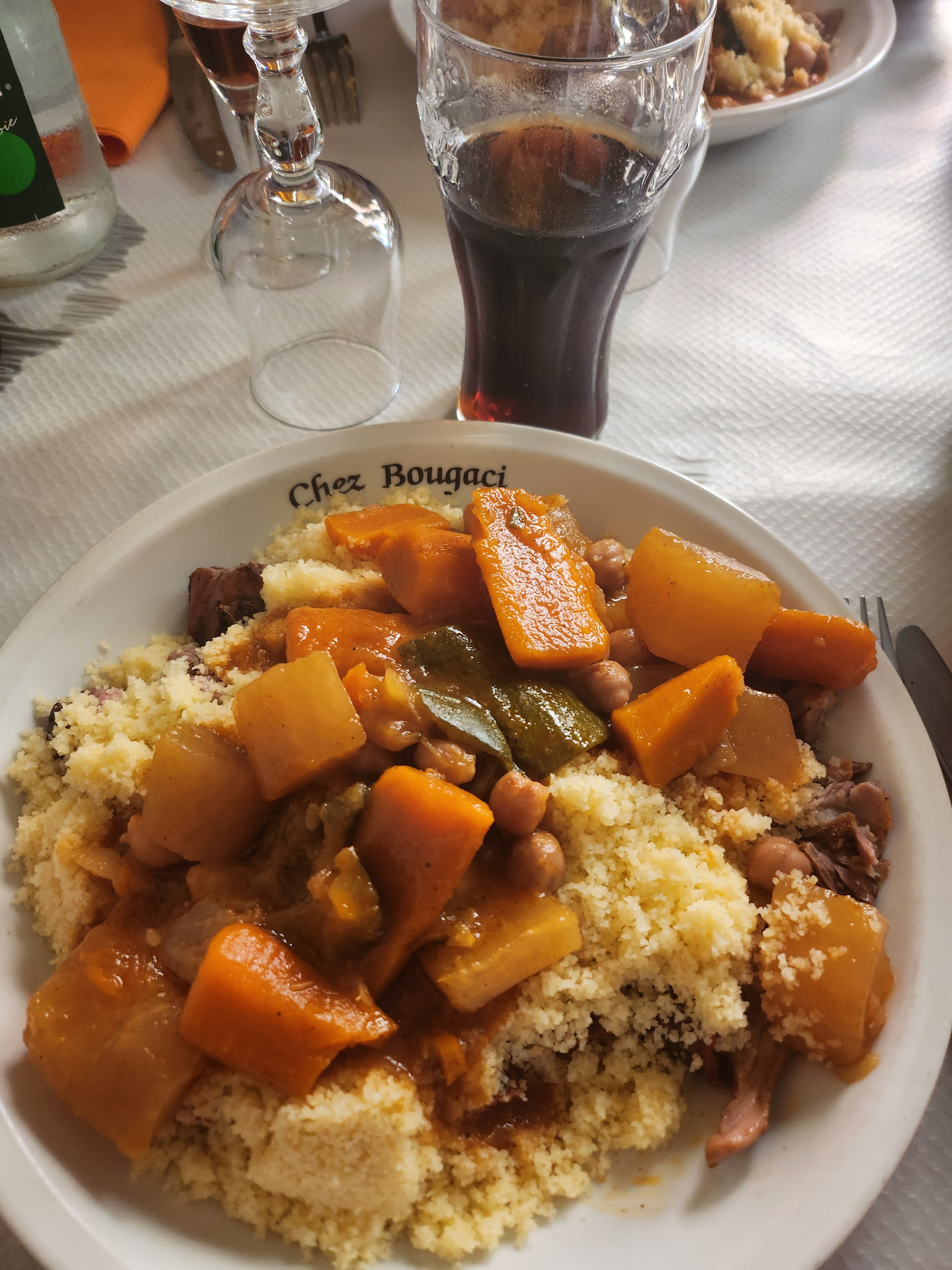Restaurant sympa avec des serveurs pro un couscous à la hauteur de sa réputation au proportion très généreuse suivi d'un thé à la menthe et de corne de gazelle succulente 😀