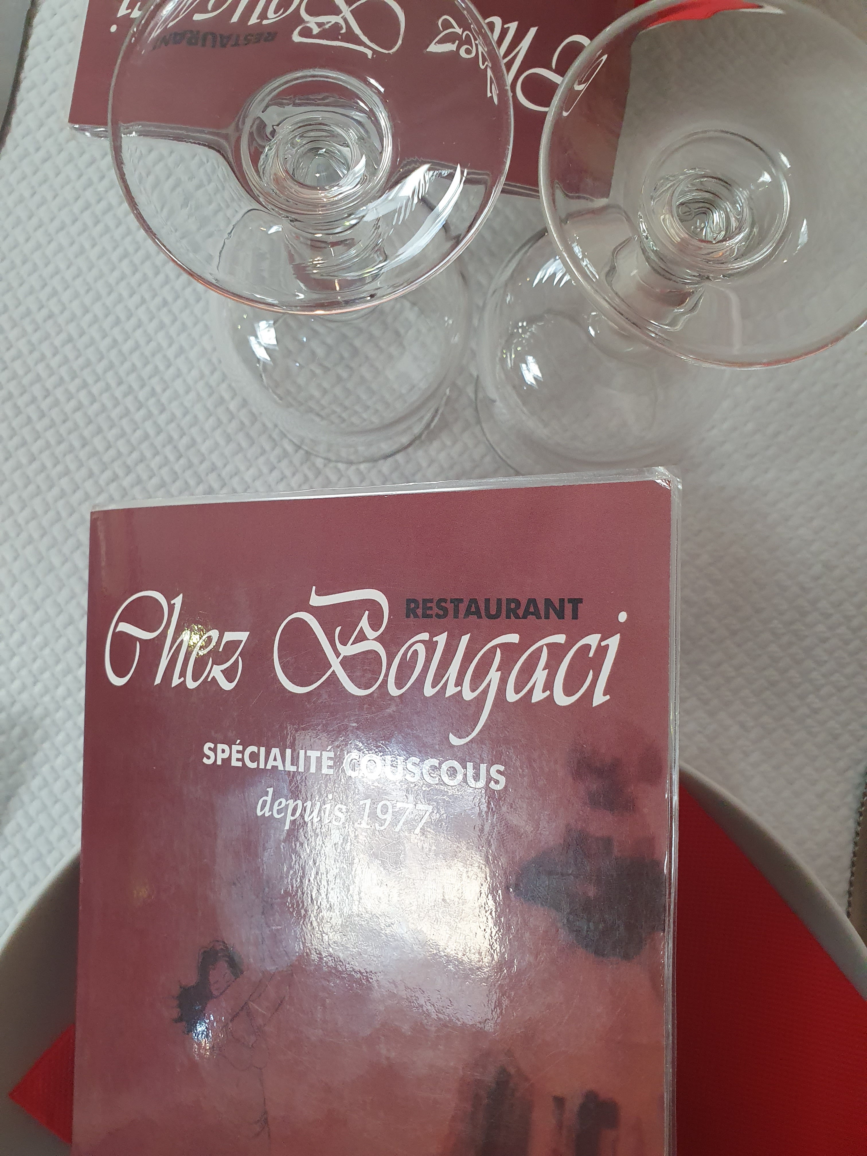 Chez bougaci,cet le palais des milles et une nuit. Le restaurants et très grands, l accueille et top ainsi que les serveur et le service. La semoule, la viande,les merguez et les légumes étaient parfait, et les dessert sont des délices. Danseuse présente le week-end Je recommande.