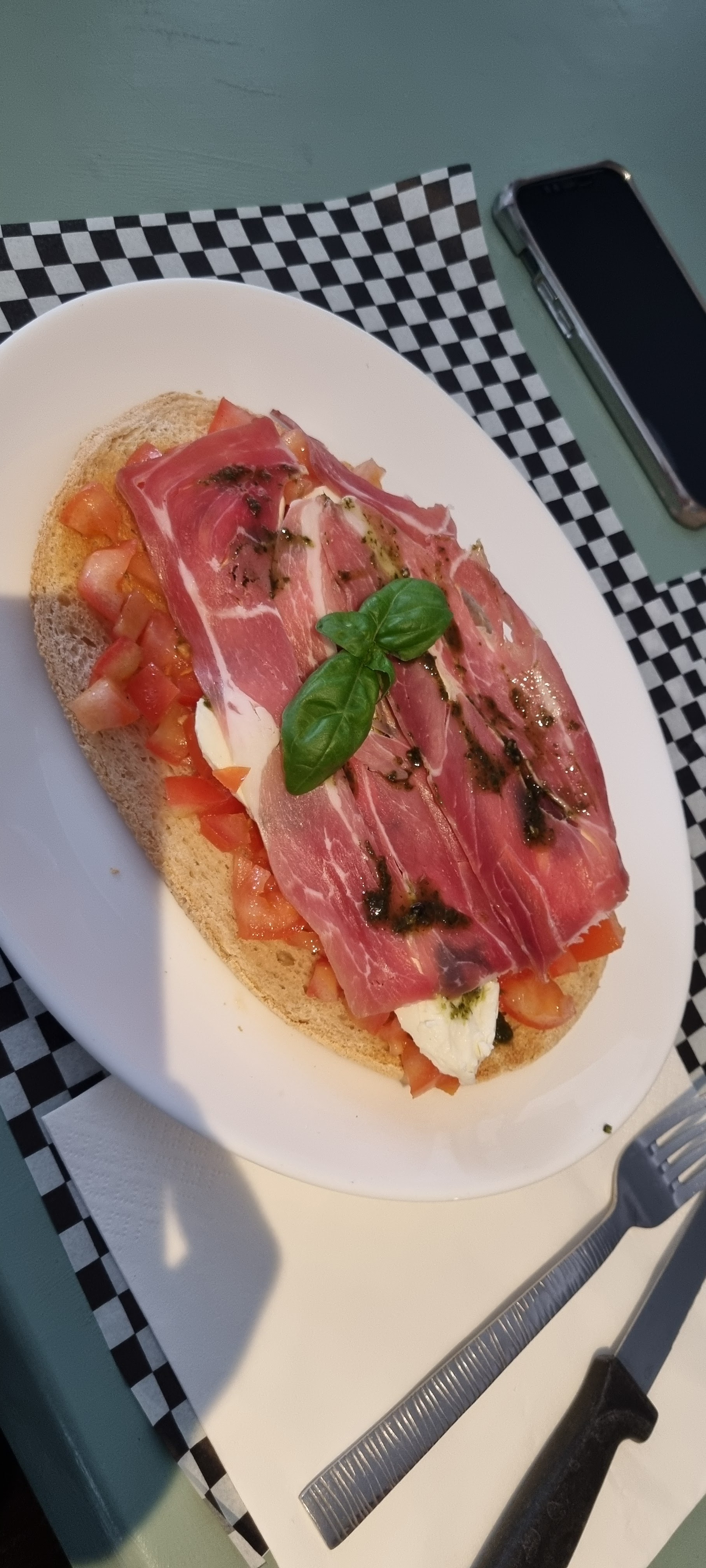 Nous avons choisi le restaurant à cause des récessions. La première chose qui vous inquiète lorsque vous passez devant. Même en entrant. Il n'y a pas une atmosphère accueillante. Il n’y avait personne là-bas. La propriétaire (je pense qu'elle l'est) est une dame très gentille et sympathique originaire d'Albanie. Ils savent cuisiner, pensais-je :) ce qui était vrai. Nous l'appelons Bruschetta (généralement, nous le connaissons comme entrée mais ici, je pense que c'est un plat principal ?) Certainement énorme et bonne - surtout bon marché. La carbonara était également délicieuse. Prix corrects. :) Ne vous laissez pas tromper par les apparences et surprenez-vous. *** Eventuellement retour au patron, un peu plus de déco déjà sur les tables et autres sets de table plus invitants et de jolies serviettes créeraient tout de suite une meilleure ambiance :)