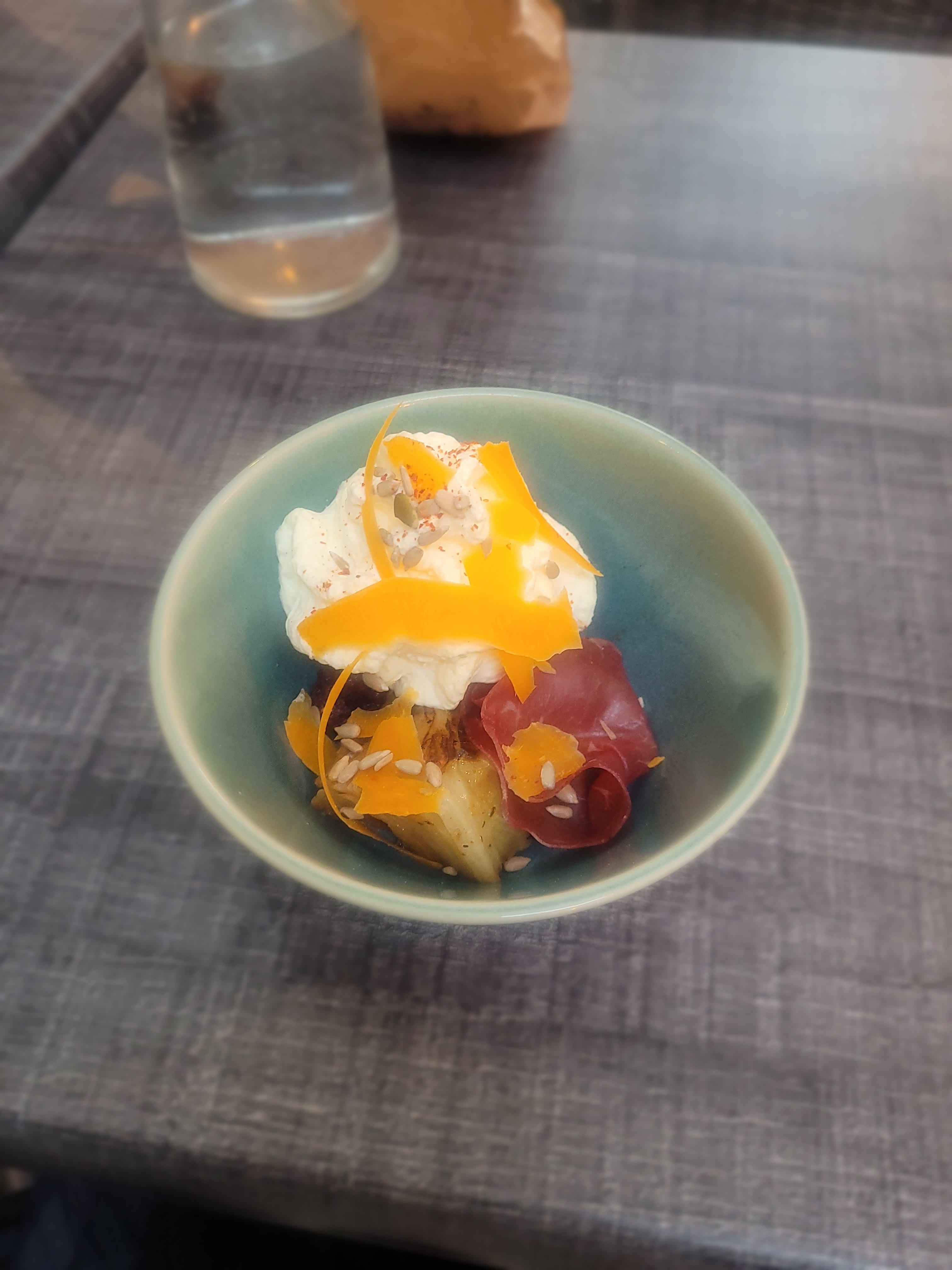 Après un certain temps d'attente, nous avons dégusté 2 entrées 1 plat et 1 dessert concoctés par le chef avec les produits de saison. De belles saveurs et une belle découverte lilloise pour nous douaisiens , mais que nous n'avons pas retrouvé dans les vins qui nous ont été proposés. Le cadre est original et l'accueil sympathique. Rapport qualité/prix, peut mieux faire.