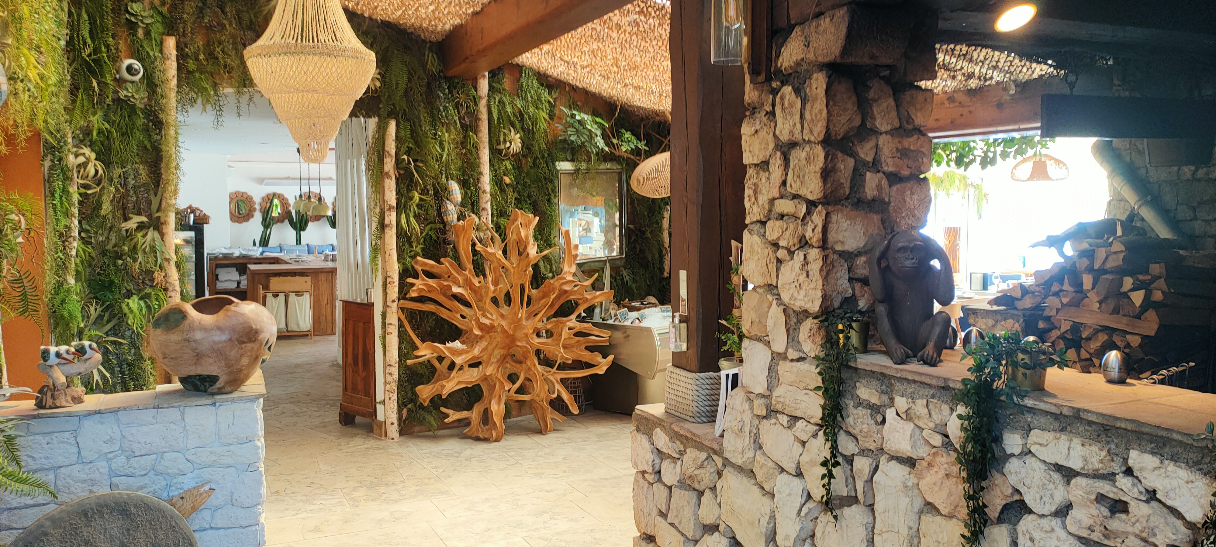 Un lieu magique avec vue directe sur la plage puis la mer. Il fait frais et l'odeur du feu de bois, humm! La quasi majorité des plats sont cuisinés au feu de bois, un régal! Même le poisson