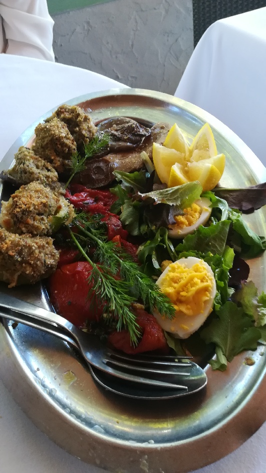 Grosse déception. Cadre très agréable, hélas les plats n’étaient vraiment pas bons. Hors de prix pour 2 entrées, 2 plats sans saveur, et une bouteille de San Pellegrino. Entrées froides correctes (salade d’artichauts et poulpe). Petits farcis décevants, mal réchauffés au micro-ondes, remplis de mie de pain et de riz. Petite sole vendue pour le prix d’une très belle sole, gratin dauphinois et légumes froids mal réchauffés au micro-ondes, très gras. Je ne recommande pas.