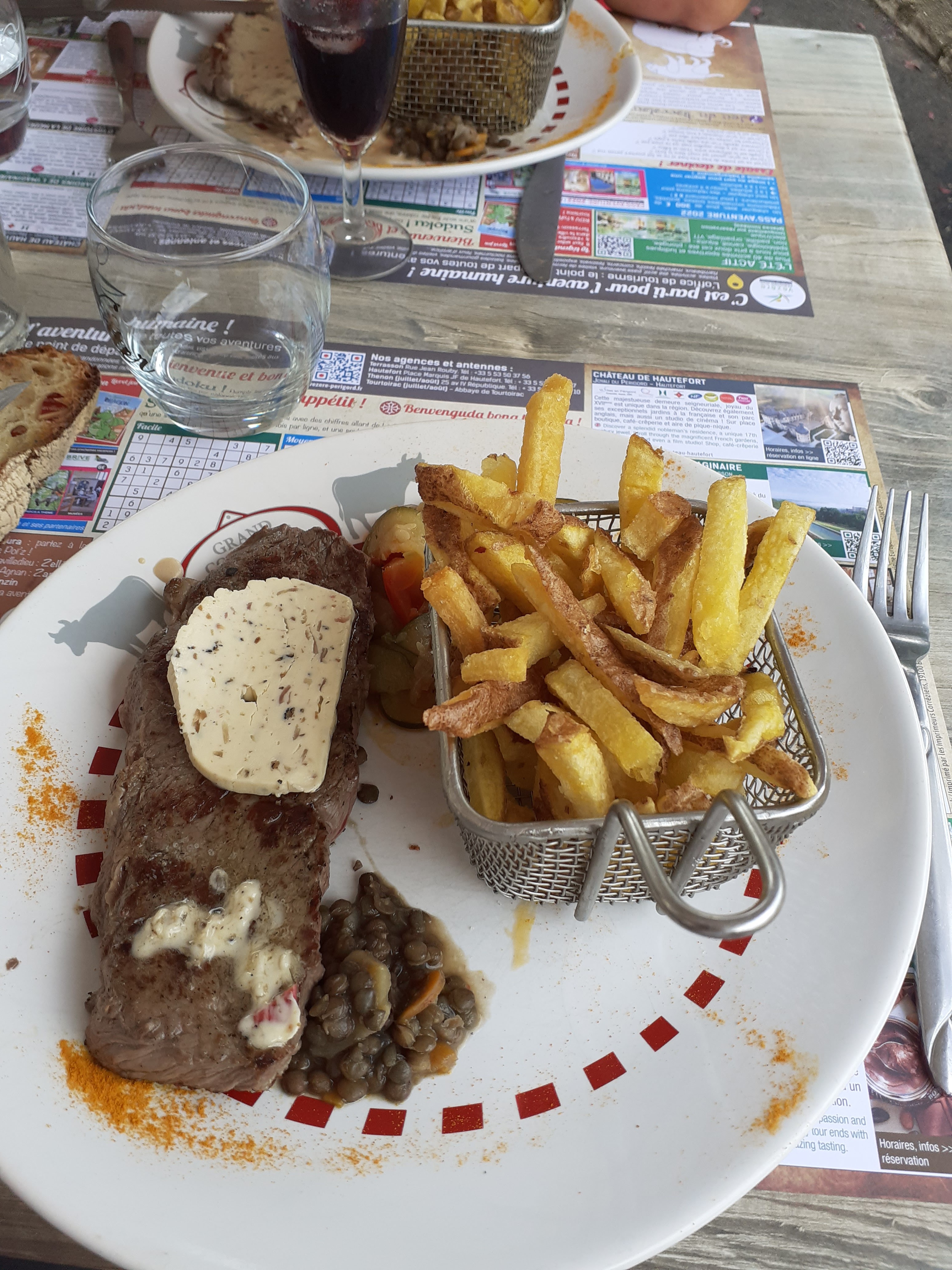 L accueil plutôt agréable quant au repas beaucoup de points négatifs. Salade très basique, viande de très mauvaise qualité (nerveuse) baignant dans soi-disant une sauce aux poivres, lentilles qui n avaient rien à voir avec le plat, à la rigueur dans un petit ramequin. Très décevant.