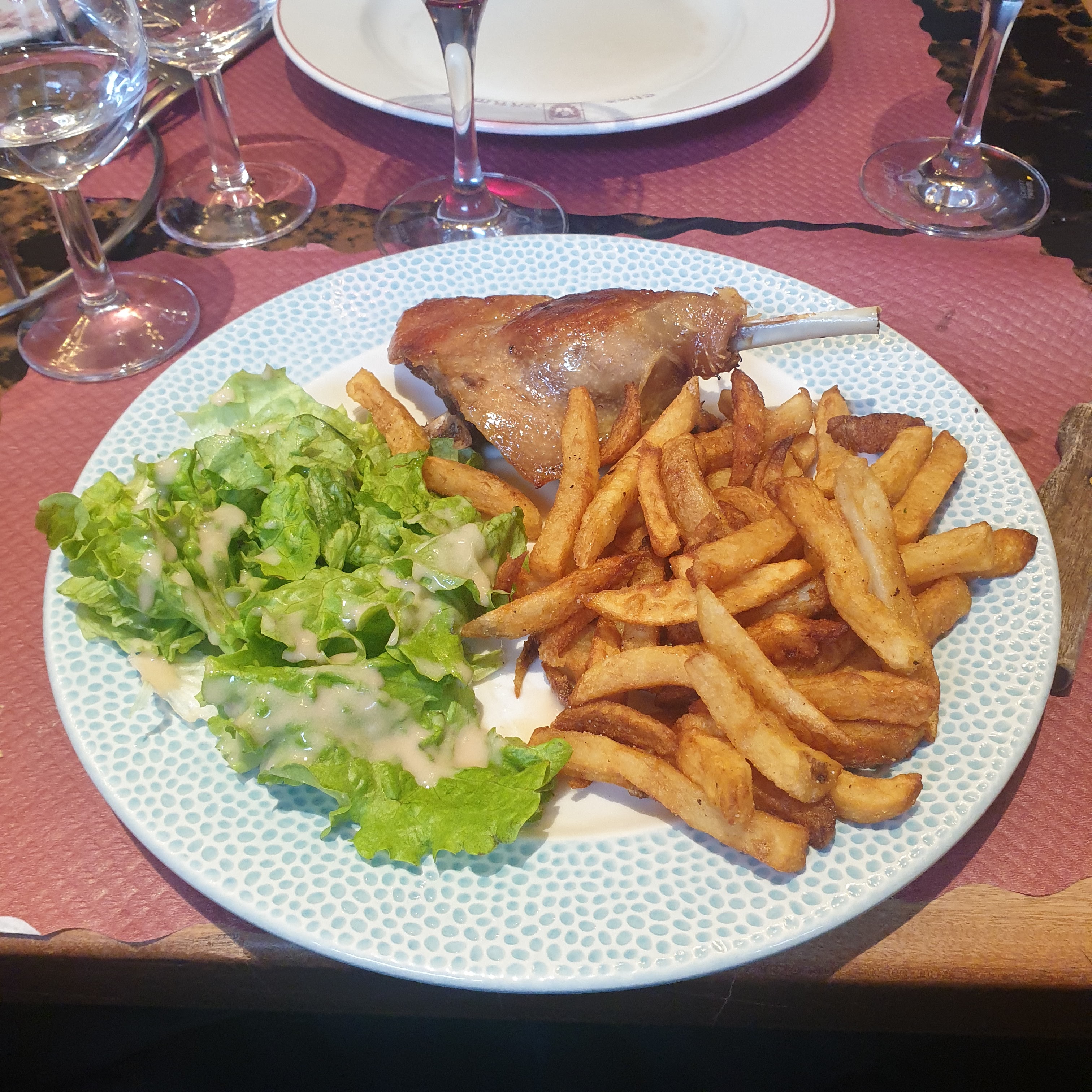 J’ai commandé un confit de canard. J’ai malheureusement eu encore faim d’autant que je ne suis pas spécialement un gros mangeur. Mais, surtout c’était bien trop sec et trop salé. Du coup, je doute fort que le confit soit fait maison. Mais, bon, laissons leur le bénéfice du doute. Par contre, le service était assez exécrable, pas un sourire et surtout un patron particulièrement arrogant au moment d’encaisser. En bref, je ne vous déconseille cette adresse.