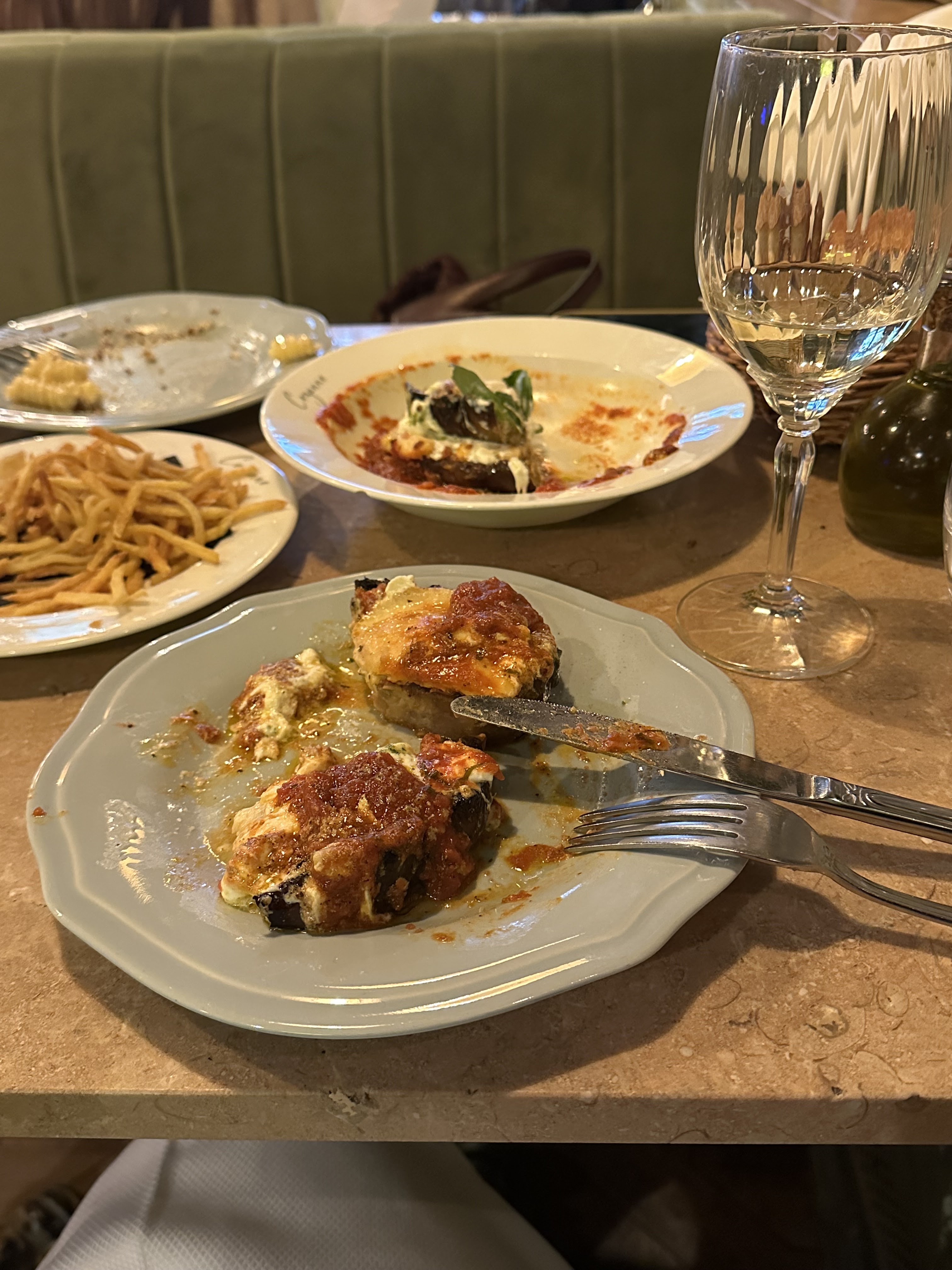 Restaurant charmant ! Le personnel est super et la nourriture était incroyable. Je recommanderais certainement l'aubergine parmigiana, les arancini et les raviolis ! Tout était délicieux. La seule raison pour laquelle nous avons obtenu 4 étoiles était que le vin blanc et le Prosecco que nous avions commandés n'étaient pas correctement refroidis. Et les calamars étaient un peu exagérés. Assez cher mais ça vaut le coup !