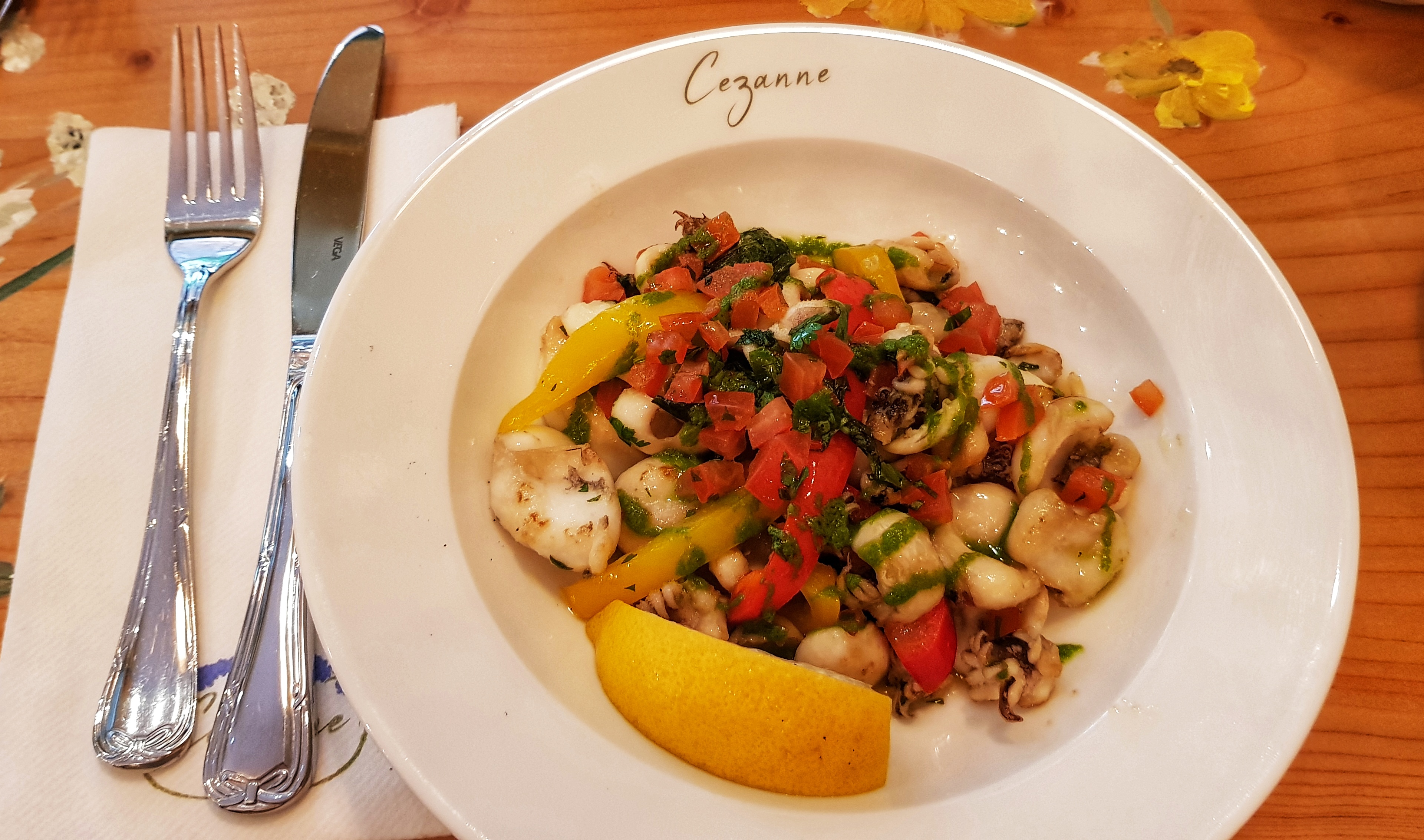 Nous avons été séduits tant par la cuisine provençale proposée par Cezanne que par l'atmosphère chaleureuse dégagée grâce à cette sublime décoration ! Merci pour votre accueil et vos conseils ! Service parfait ! Un réel avant goût de vacances dans un restaurant qui sent bon le SUD ! Nous recommandons très fortement et nous nous ferons un plaisir de revenir au plus vite !