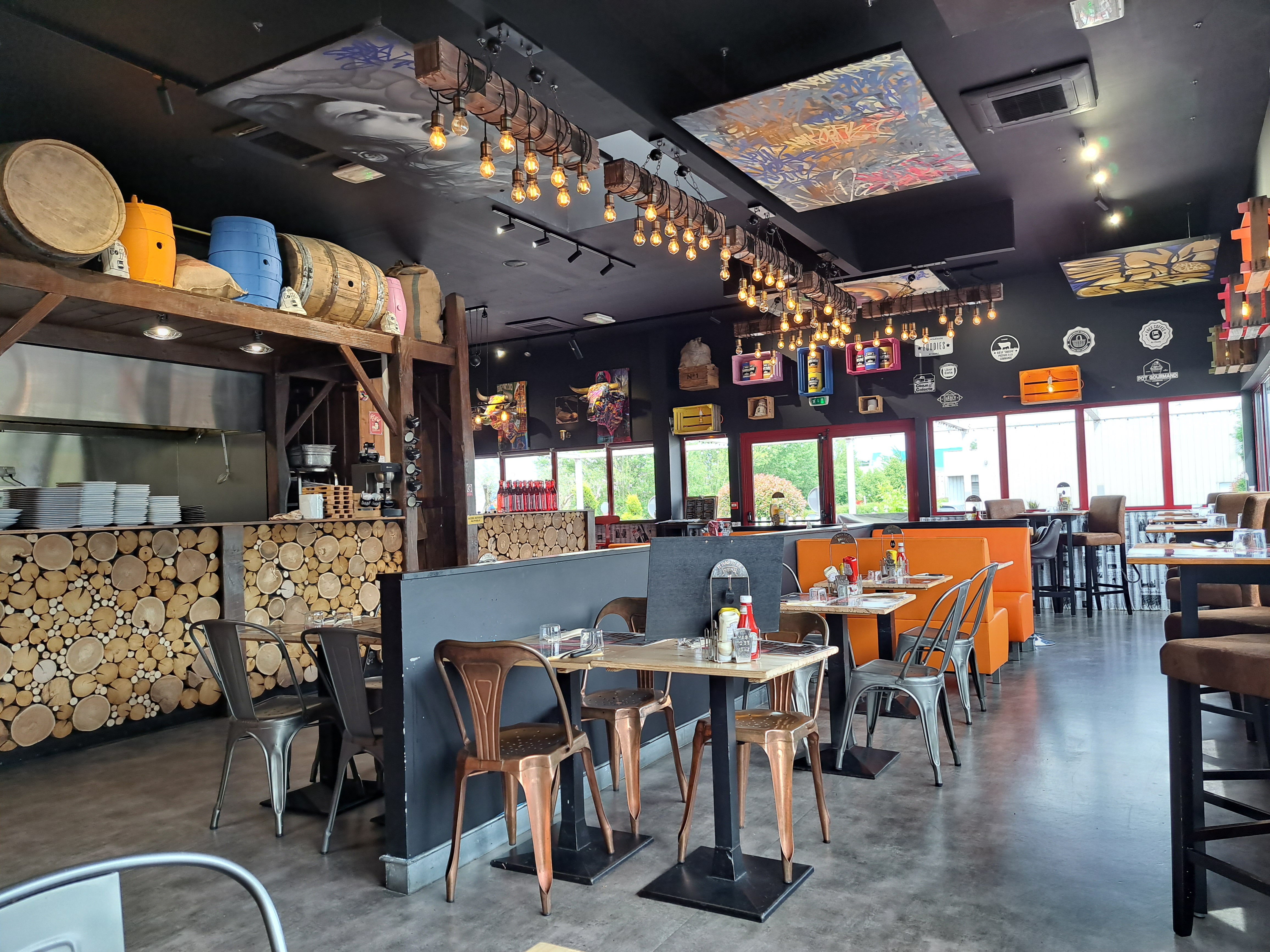 Super resto sur la route du retour des Vacances. Établissement très bien situé en zone commerciale proche de l'hôtel. La déco est hyper sympa, très bon choix de plat et surtout des tarifs super correct, ce qui est rare de nos jours , notamment le menu enfant a 5.90 euros. Les plats étaient très bon.Service un peu long mais on nous a expliqué un problème de machine donc très bonne communication a ce propos.