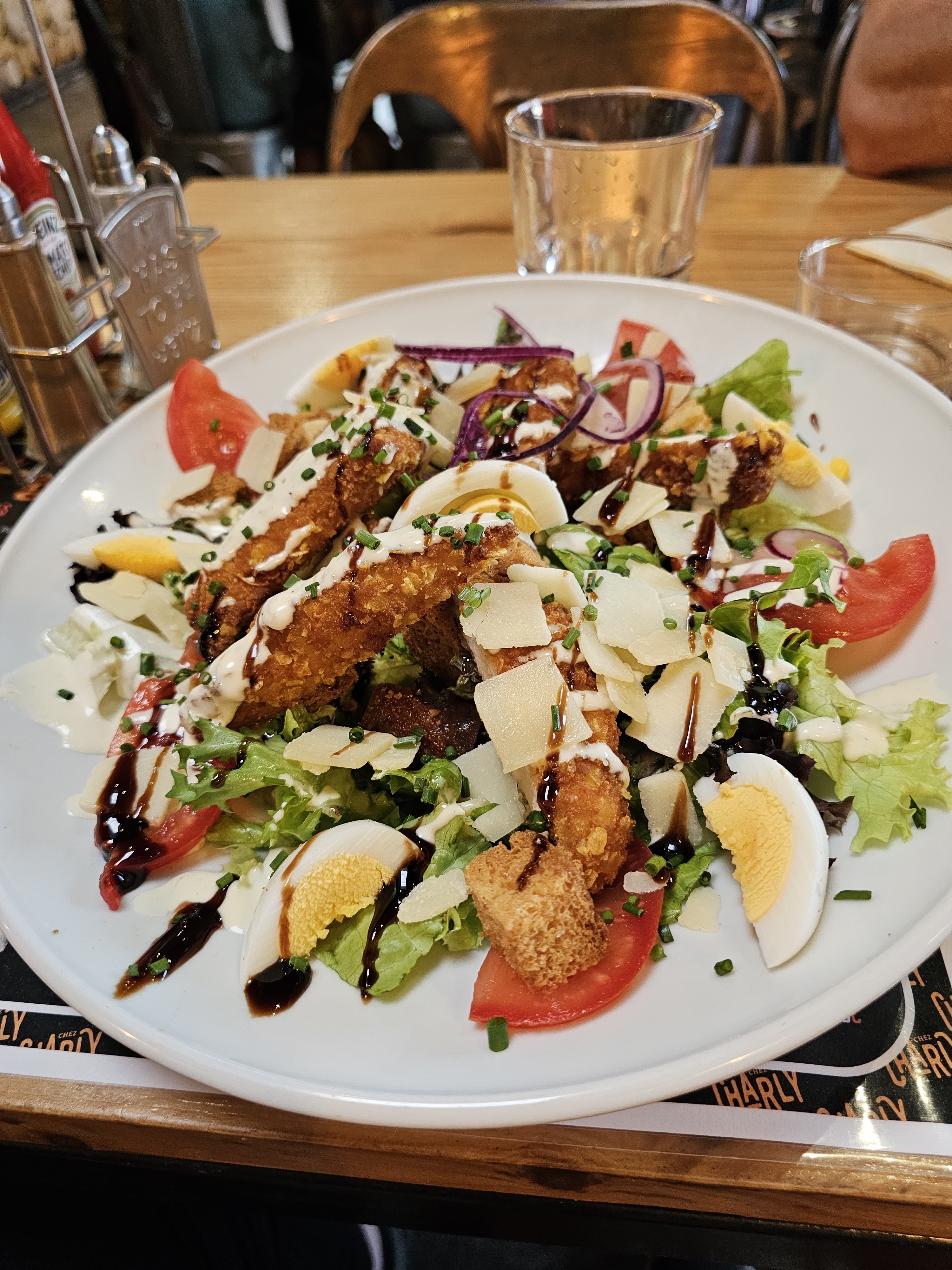 Un très bon moment passé avec un service rapide et agréable Une salade Caesar super copieuse et des frites excellentes