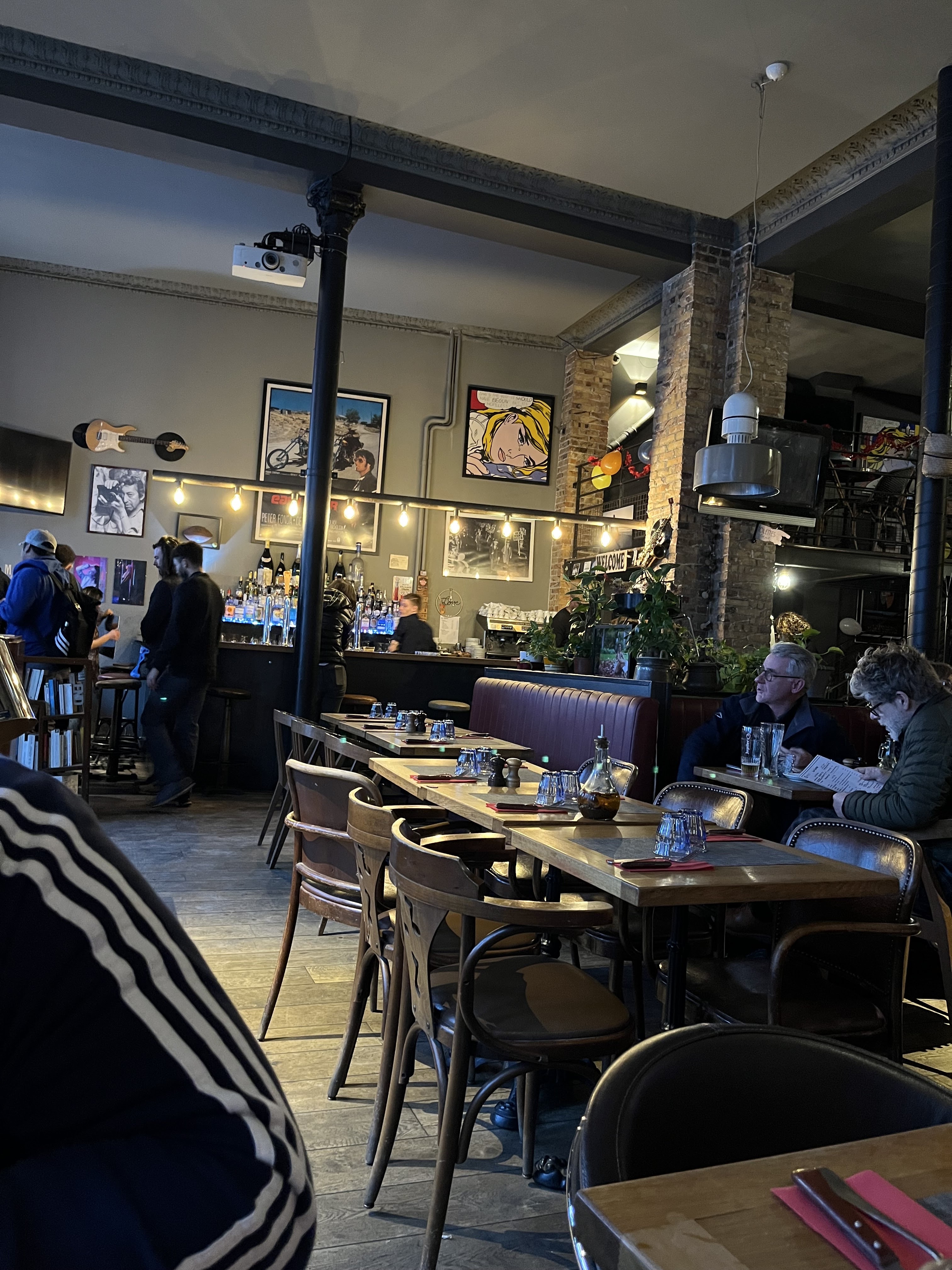 Bar esprit Brooklyn, tendance jazz, dans le quartier Batignolles. De la place pour se retrouver entre amis, discuter et apprécier l'excellent combo jazz cool de (ce) vendredi soir. Service détendu et aimable.