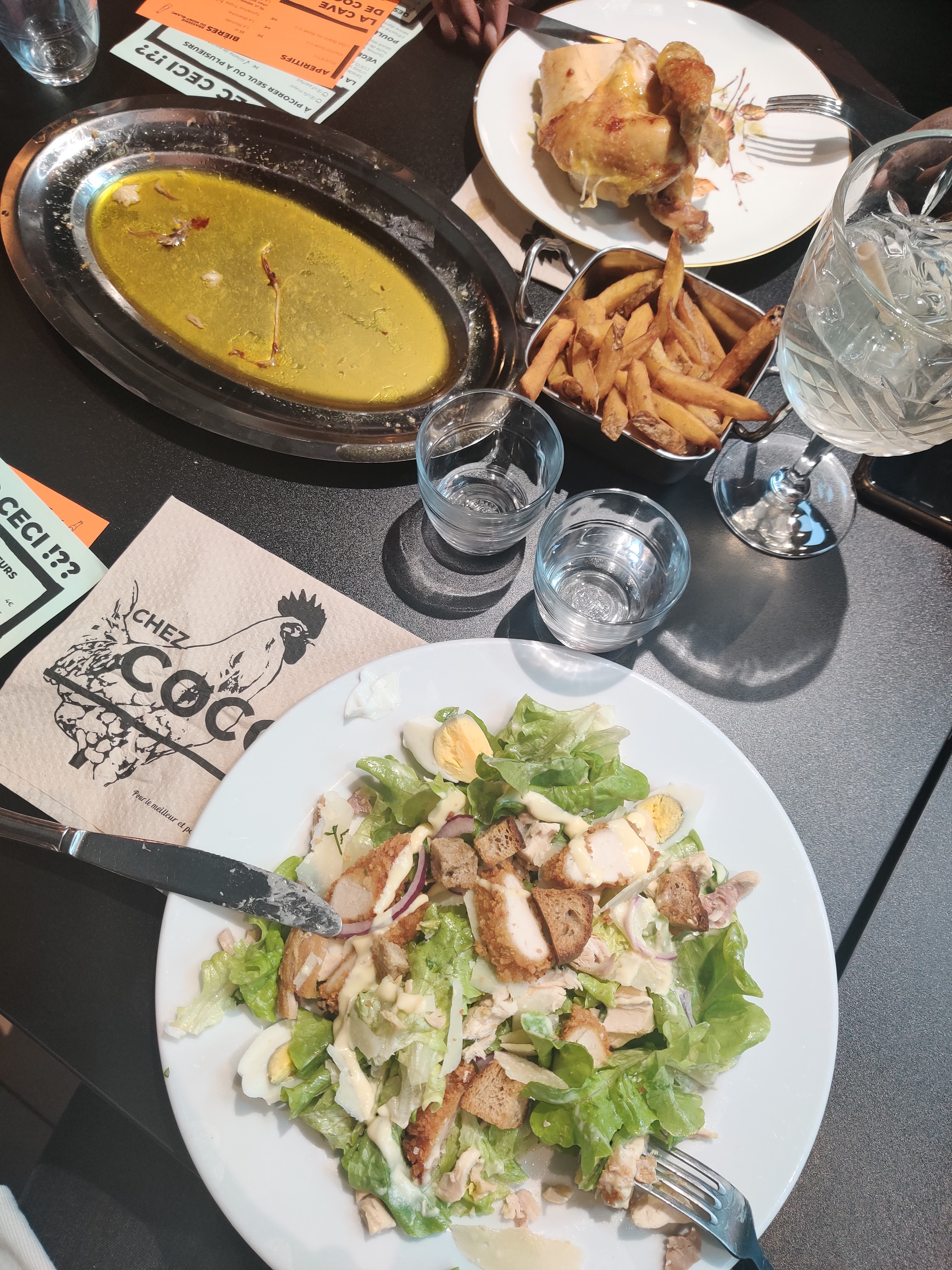 J’ai pour habitude de manger chez Coco lorsque je vais à la part Dieu. Sur place rien à redire, très bon poulet de qualité. En outre je ne recommande pas à emporter… J’ai voulu tester et ce fut un échec. J’ai commandé des rillettes de poulet et les ai appelé en amont pour leur demander s’ils pouvaient me mettre un bout de pain pour manger avec je n’en ai bien sûr pas eu et ai du manger mes rillettes seules.. pas très appétissant du coup. Ensuite il est indiqué sur Uber que les rillettes seront livrées dans un bocal en verre, en outre cela a été livré dans un emballage carton/plastique.. Conclusion je recommande mais sur place et non à emporter