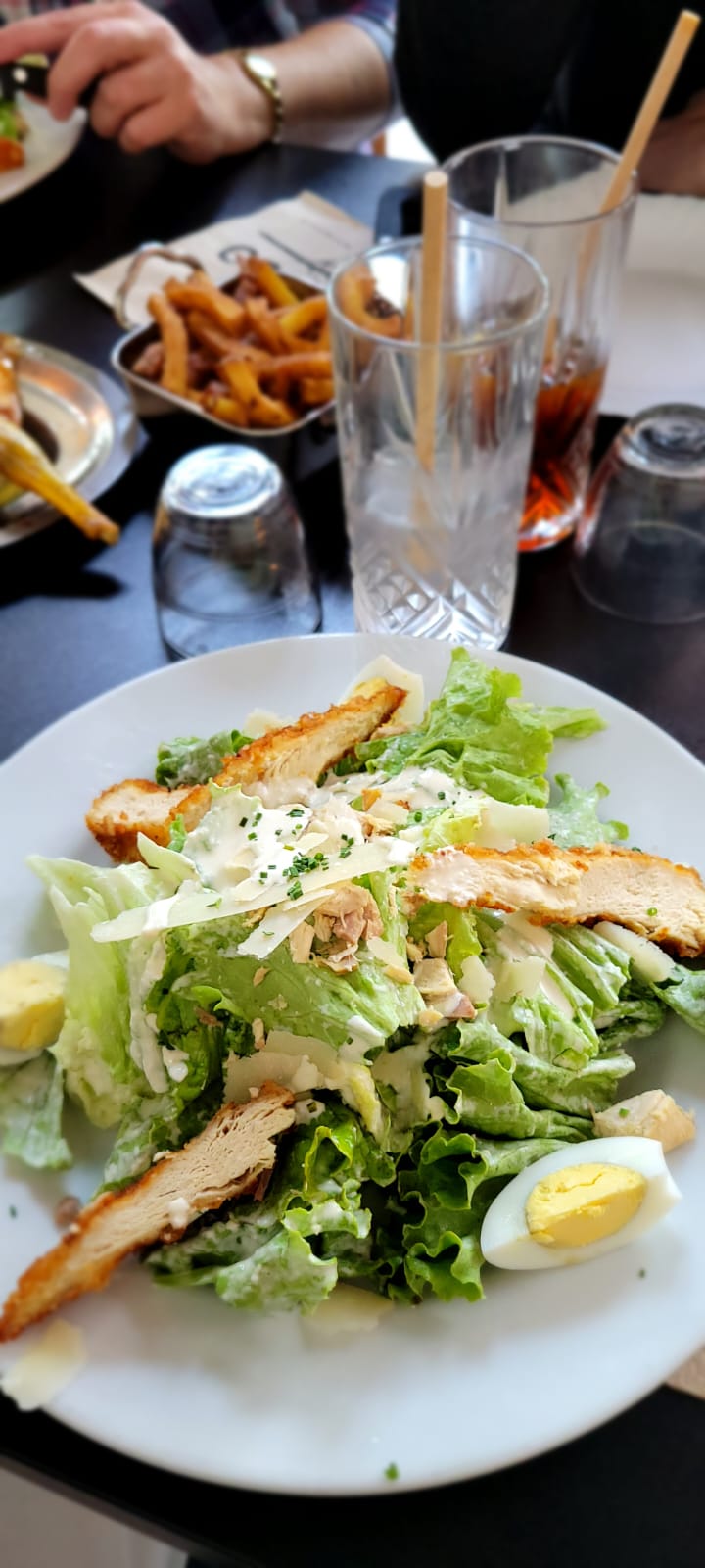 Est-ce que je recommande ce lieu? Sans doute pas! J’ai pris une salade César qui était noyée sous la sauce vinaigrette. J’ai mangé mon poulet pané sinon, ma salade avait un goût rance et donc payé 16€ une salade et 6€ un mojito et ne pas finir les deux, c’est grave ! Vraiment, j’ai trouvé l’ensemble de mon repas pas bon du tout.