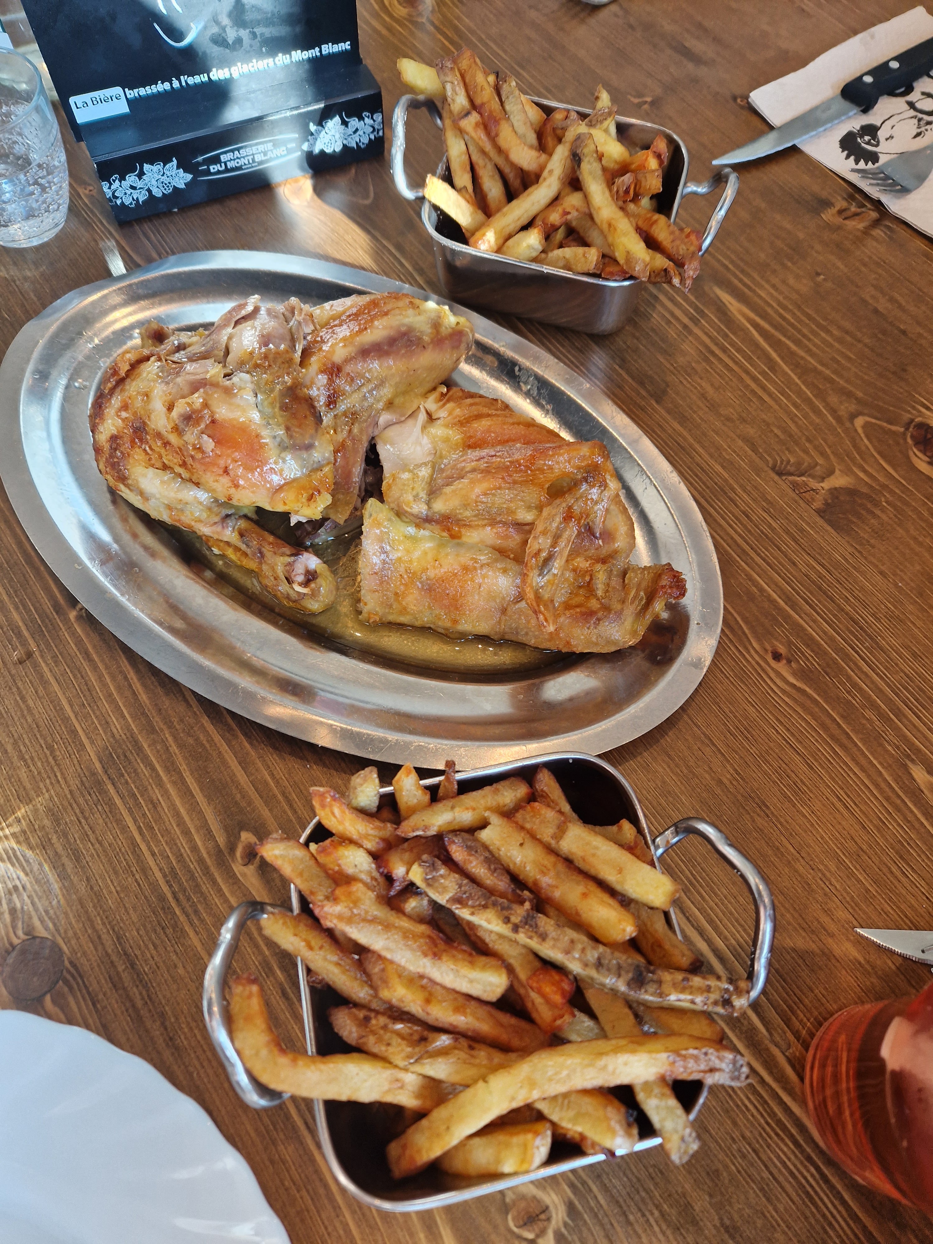 J'ai pris 1/4 de poulet Frites avec une bière blonde Mont Blanc. Simple mais efficace comme le service... Je n'en attendais pas plus.