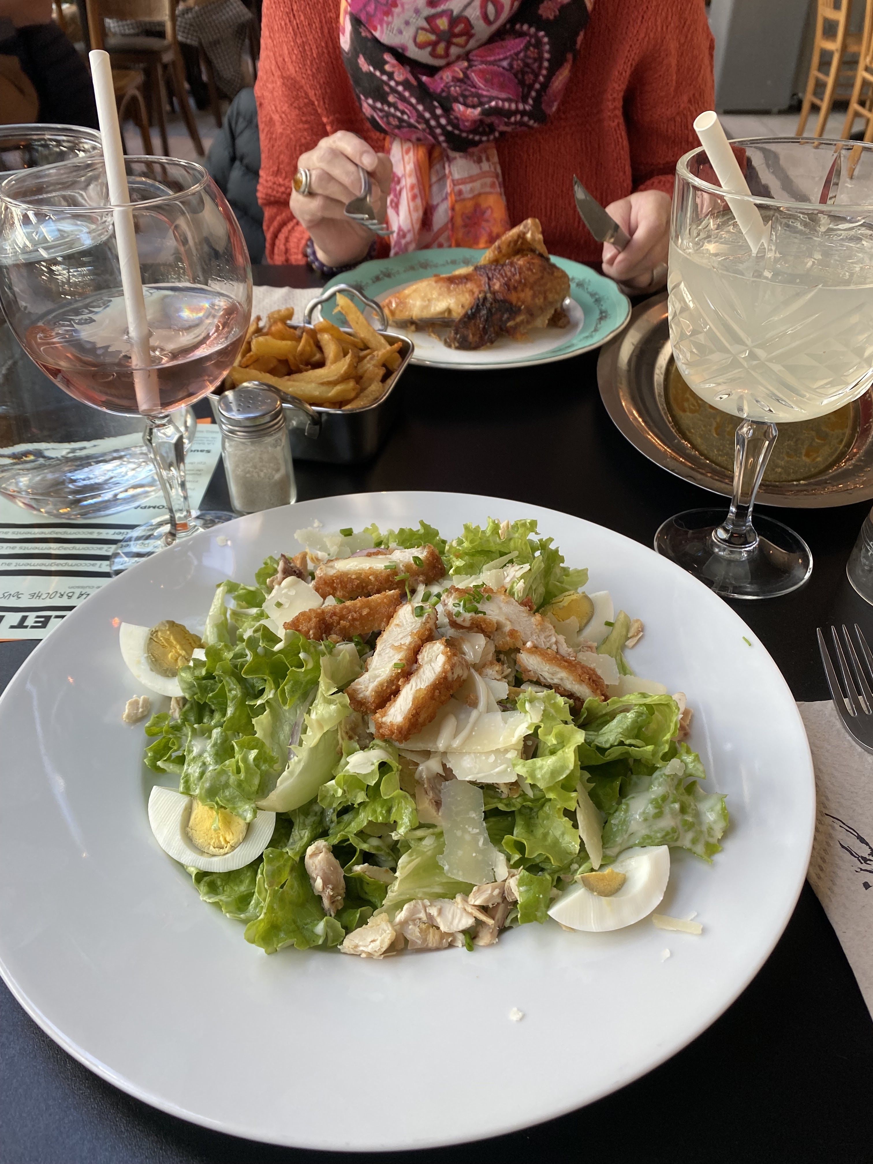 Génial ! Nous sommes venues avec 5 amies et tout s'est très bien passé. L'accueil est vraiment super ! Mes amies ont pris des quarts de poulet et j'ai pris la salade César qui était bonne. Nous étions toutes ravies. Concernant le prix, sachant que quasi tout est bio (ou tout ?) , acheté en France, poulet label Rouge, les desserts faits sur place, les cuisines semblent propres, l'hygiène est là (pas le cas dans d'autres resto du centre) ... Je trouve ça tout à fait correct ! On reviendra c'est sûr ! Merci à l'équipe 🔥