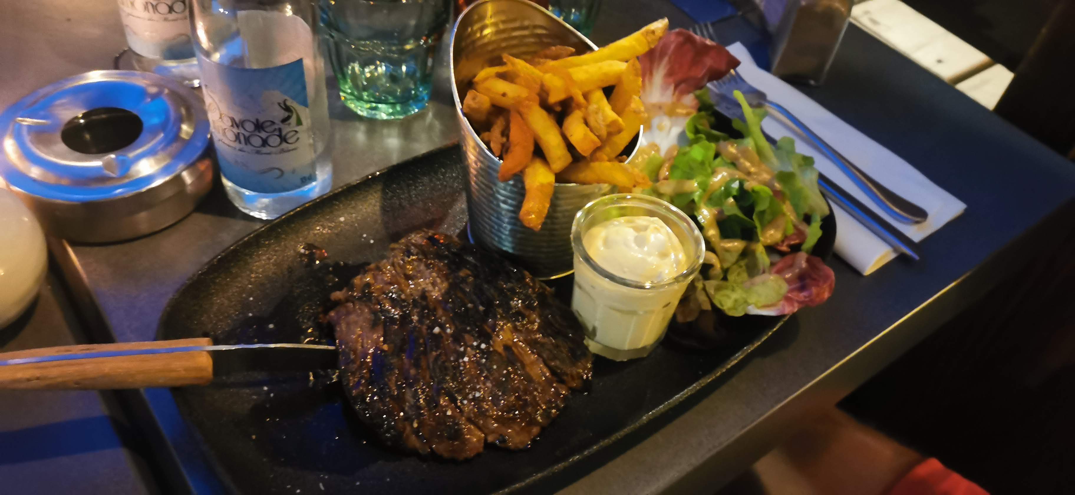 Ils nous ont acceptés en dernière minute à 22h. On a été servi comme des rois. Plat de viande de qualité (sauce tartare délicieuse), tartare de saumon très frais, salade maison au top du top. Dessert aussi très goûtu. Ajoutez à cela la sympathie des serveurs et un cadre magnifique (une vue sur le lac à couper le souffle), vous avez ici une très belle surprise! Je recommande chaudement !