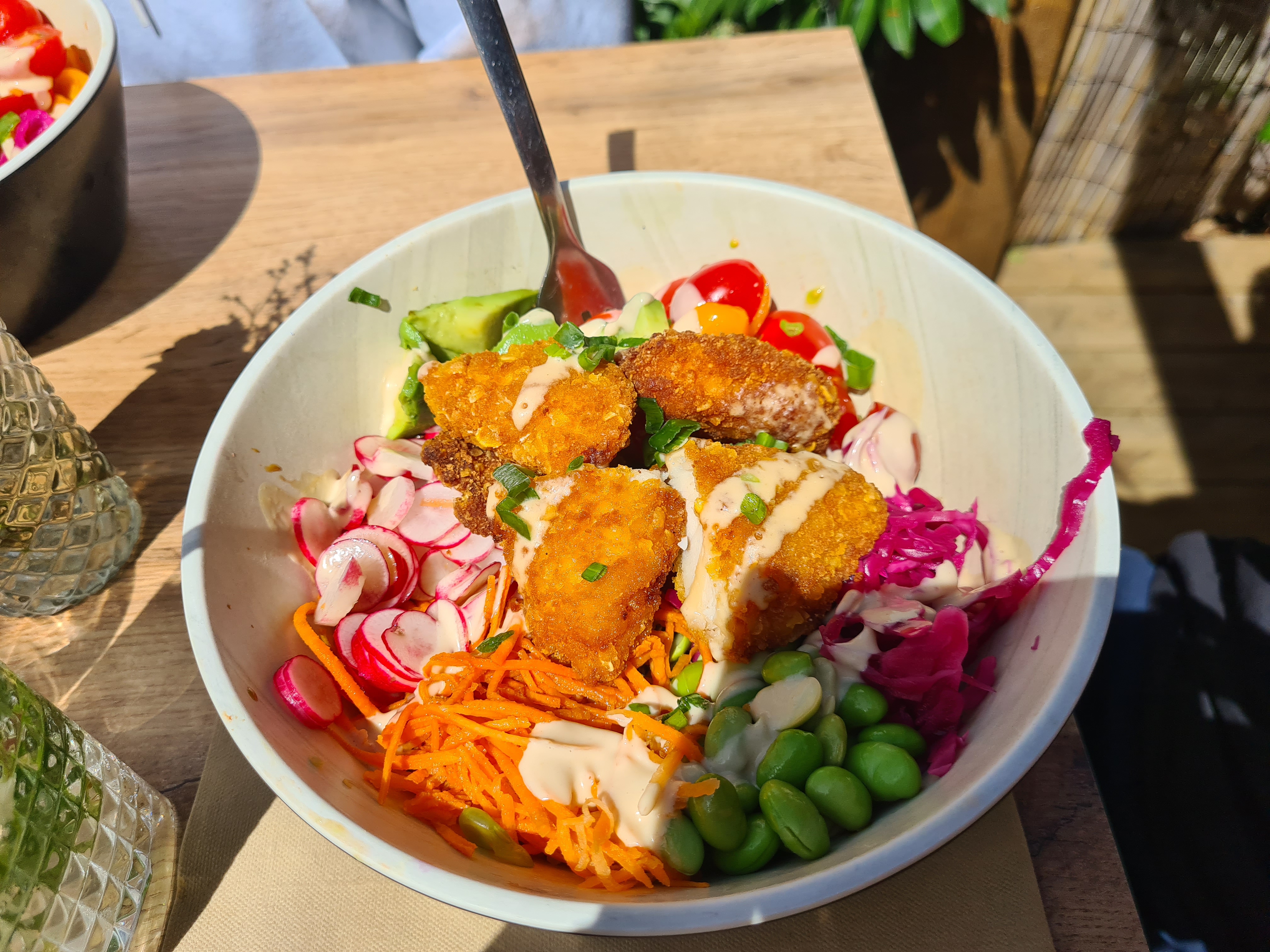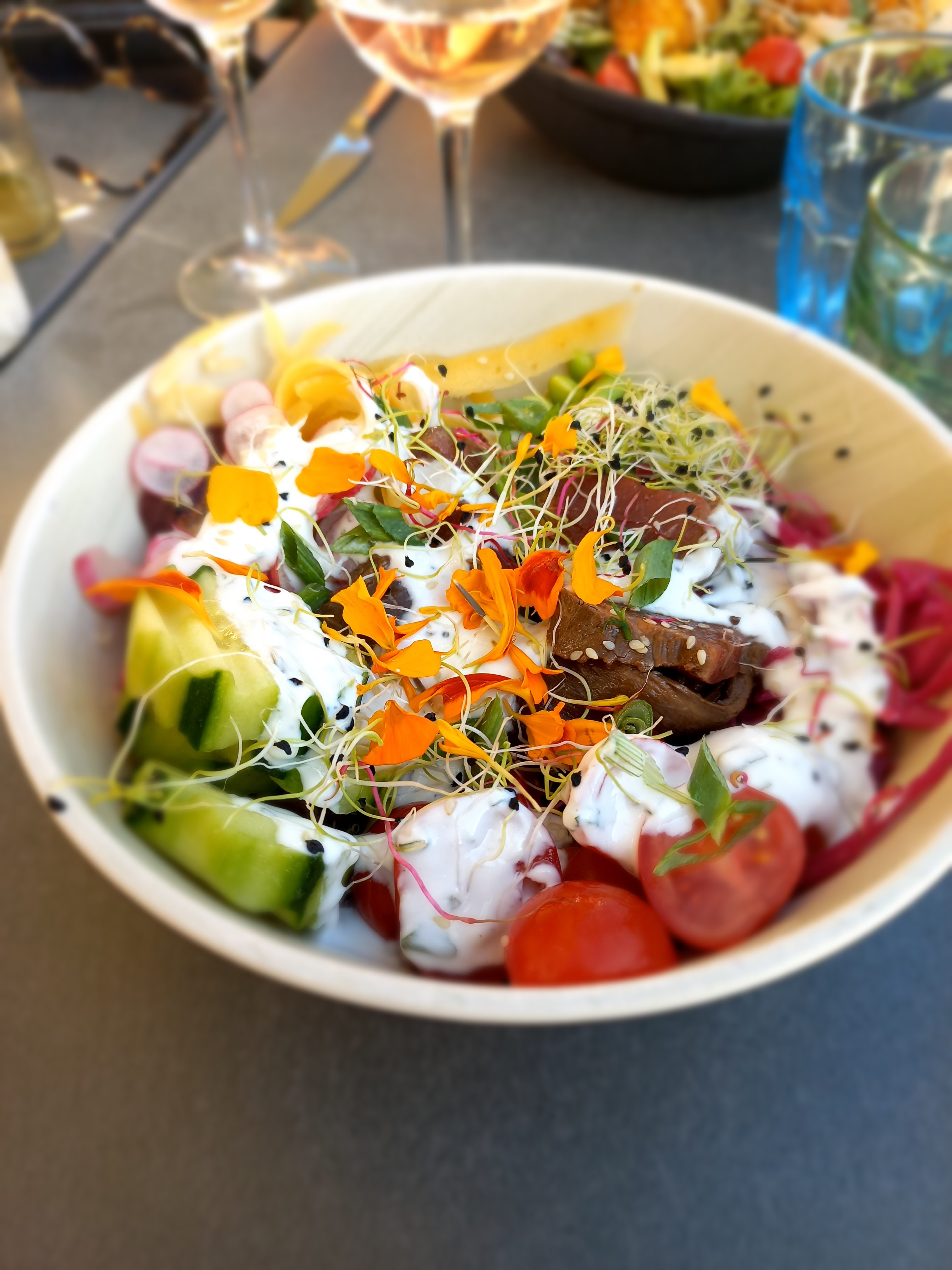 Personnel très sympa, terrasse bien agréable mais ce que j'attends d'un restaurant ce sont des plats qui sortent de l'ordinaire. Les bowls, les tartares sont bons mais rien de fantastiques. C'est frais oui mais sans goût de reviens y ! Dommage.