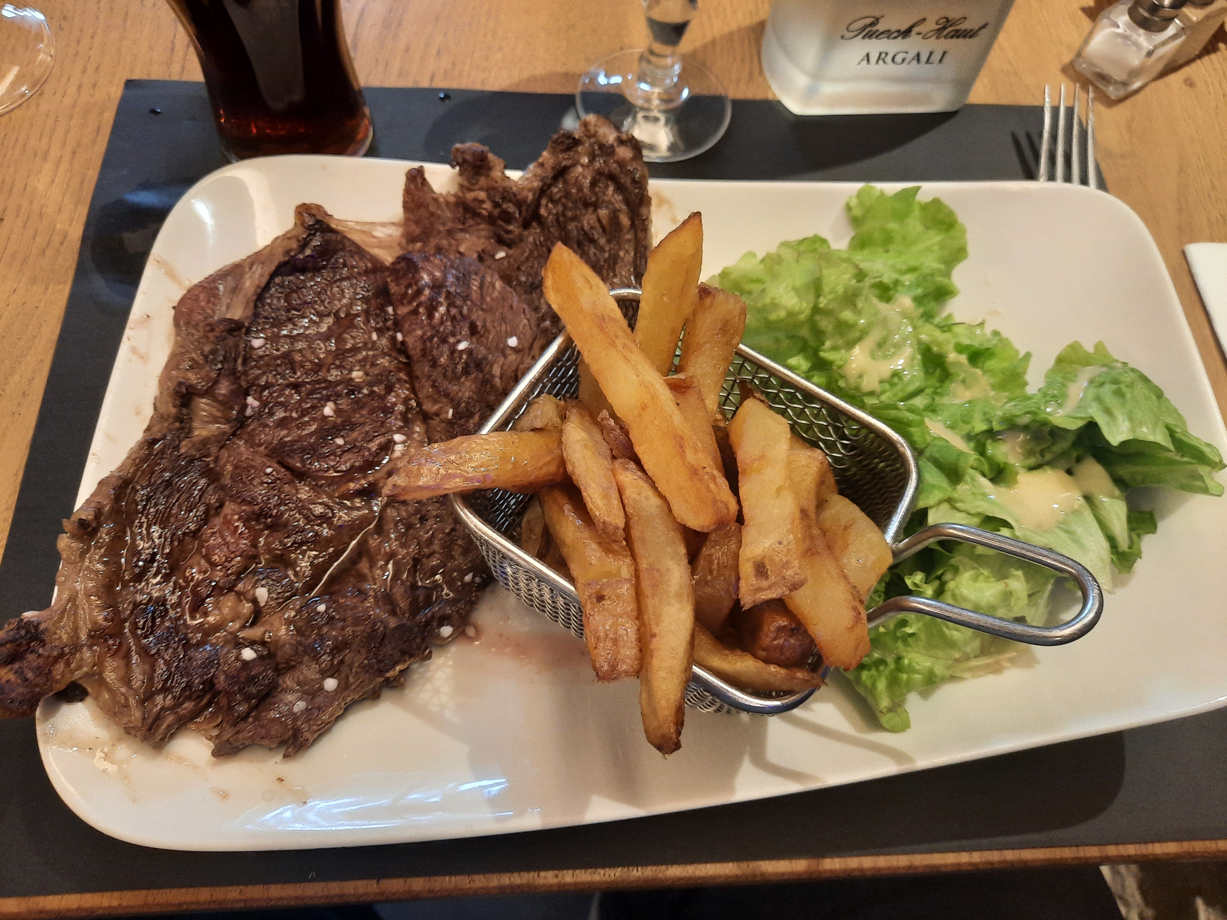 Très bon restaurant et très copieux J'ai pris une entrecôte (cf photo) et le morceau est énorme !!! Et super bon ! Je recommande et j'y retournerai ! Merci 👍