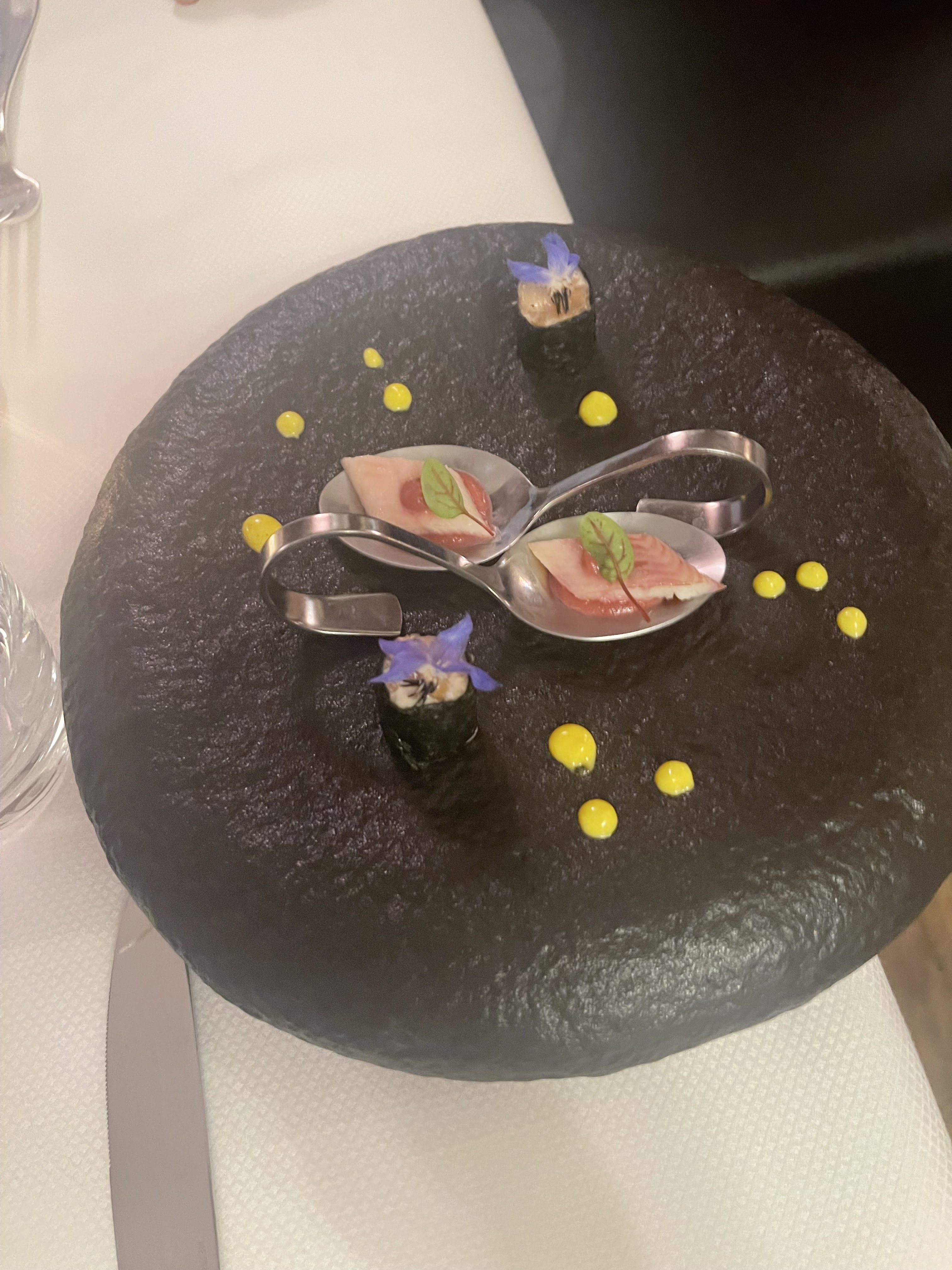 Super repas , très bon chef de cuisine très créatif, avant la dégustation , le plaisir des yeux.