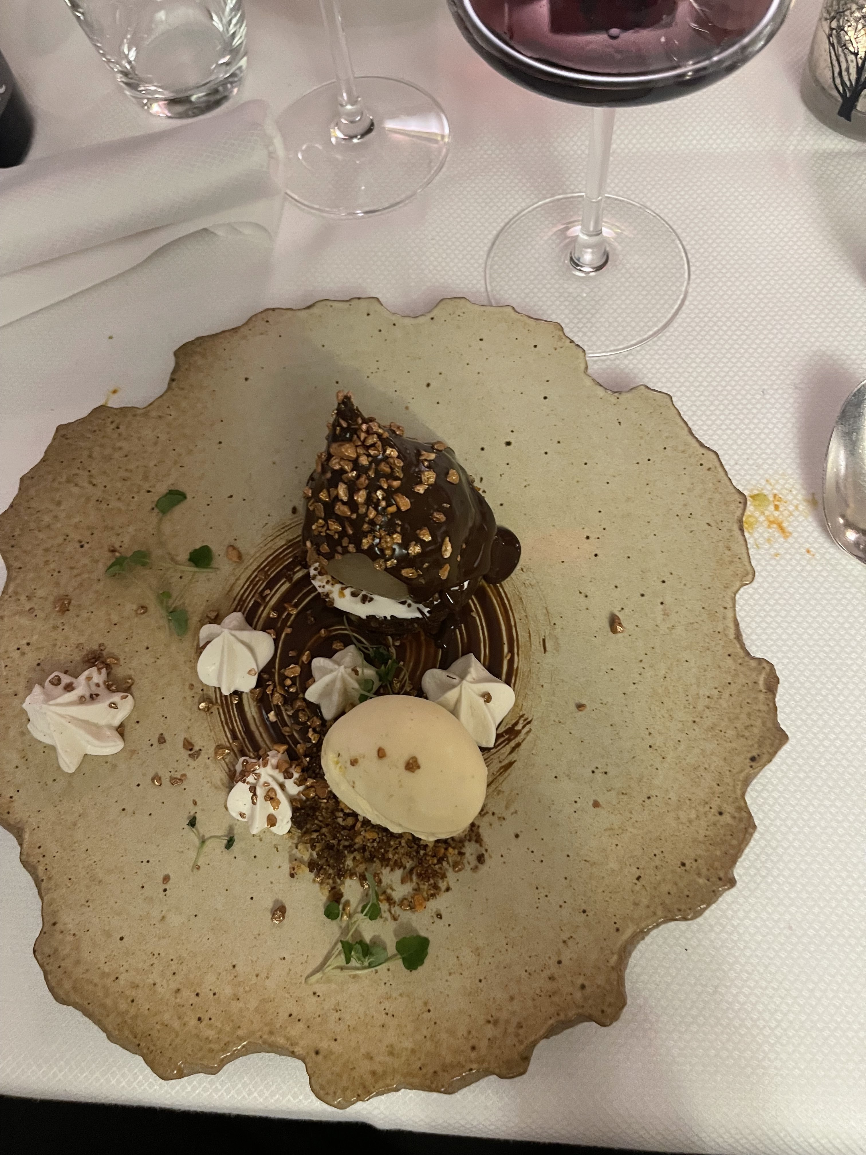 Pluma Ibérique trop cuit, arancini trop cuit également. Foie gras trop salé. Nous avons été consolés par le désert. C’était une première, nous n’y retournons plus. 150€ pour deux personnes deux entrées deux plats et un désert + un bandol a 40€ et une demi badoit. Un resto du coin émerveille bien plus nos papilles pour bien moins cher. Bonne chance Attention parfois le bouche à oreille fait du mal. Lorena