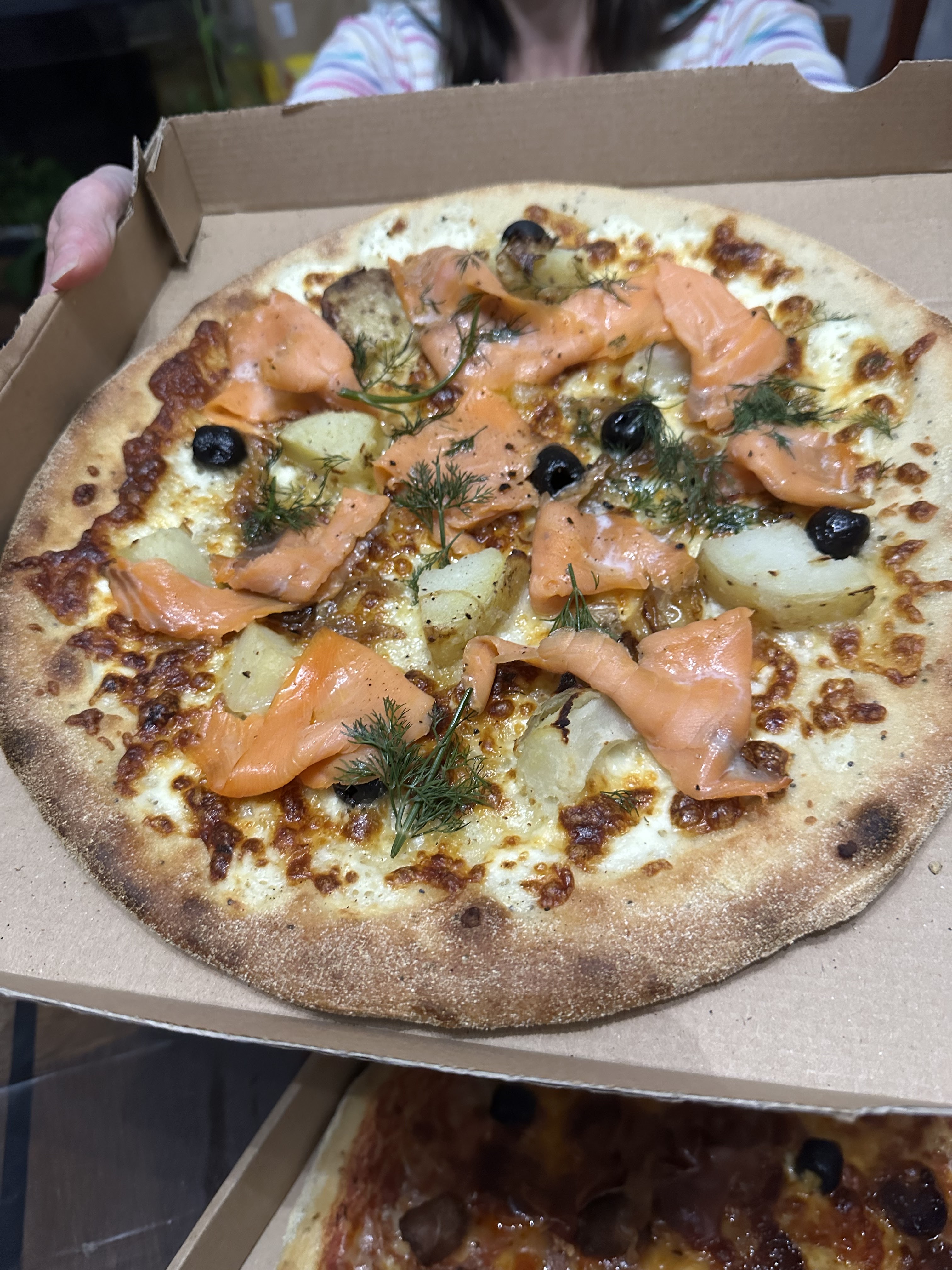 Lieu agréable et joliment décoré. Pizza différente de ce dont j'ai l'habitude, mais bon et sympa le changement 😍 je recommande 😁