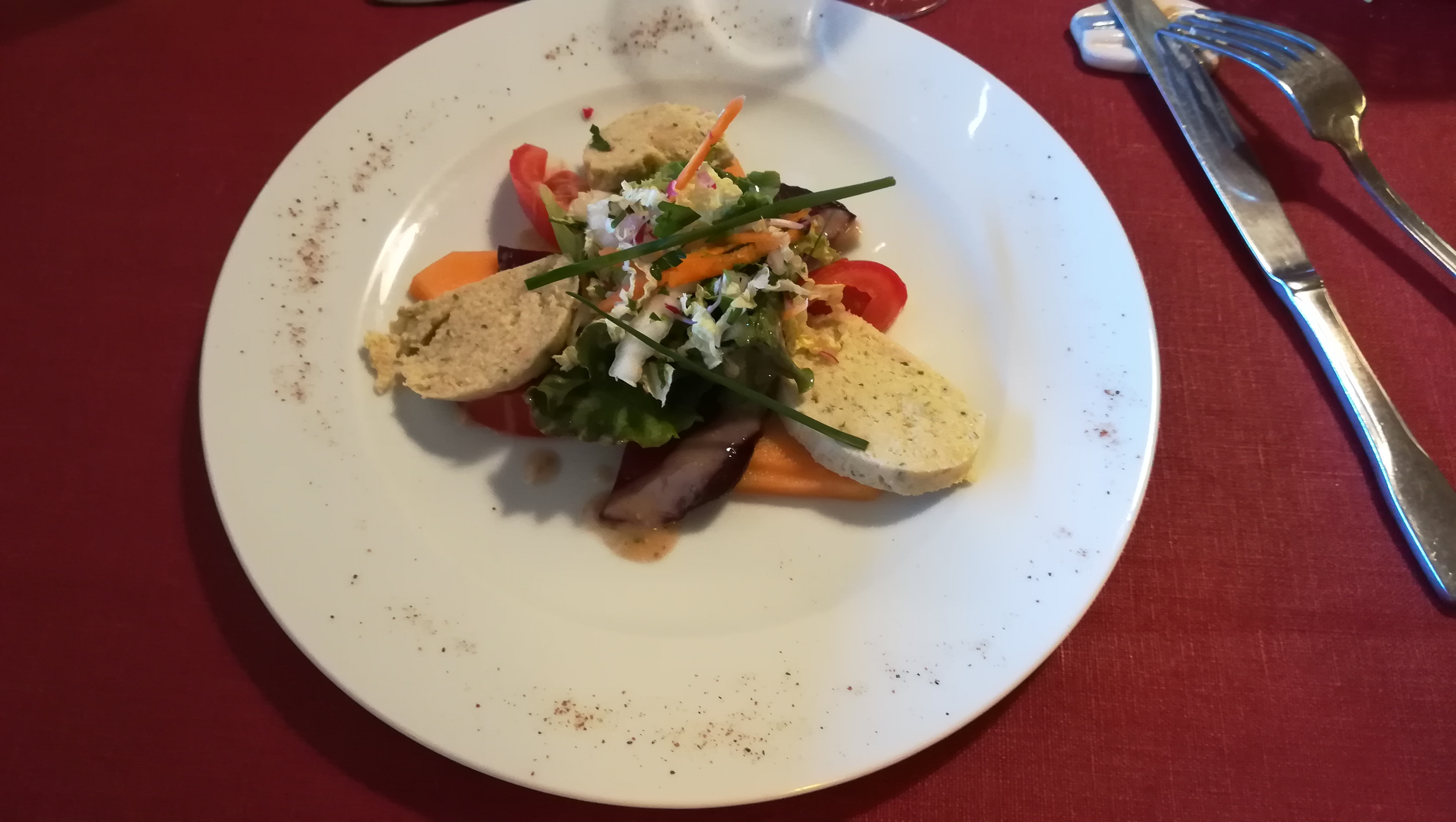Nous y sommes allés avec un végétarien qui a pris le menu végétarien. On lui a servi de la salade et une assiette de légumes. C'est tout. Les végétariens ont besoin de protéines et ils mangent du poisson, des œufs, du fromage, des protéines végétales (soja, lentilles, ...). Bref après une journée de ski, il était mort de faim. Il a dû commander une assiette de saumon fumé en supplément vu qu'il n'y avait pas d'autres propositions. Ce qui a arrondi sa note.... Donc quand on propose un menu végétarien, on ferait bien de s'enquérir de quels aliments le constituer afin de l'équilibrer.