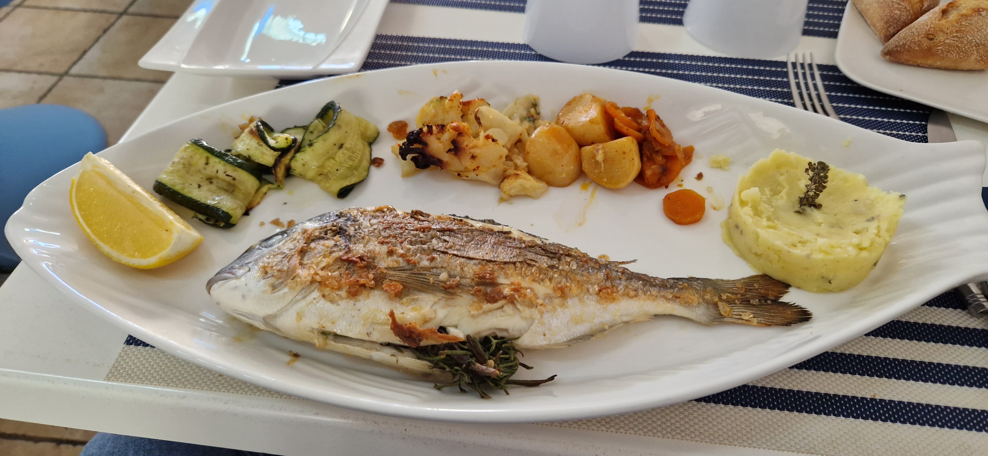 Poissons frais , recettes délicieuses, plats copieux , salle climatisée et prix correctes. On reviendra certainement !