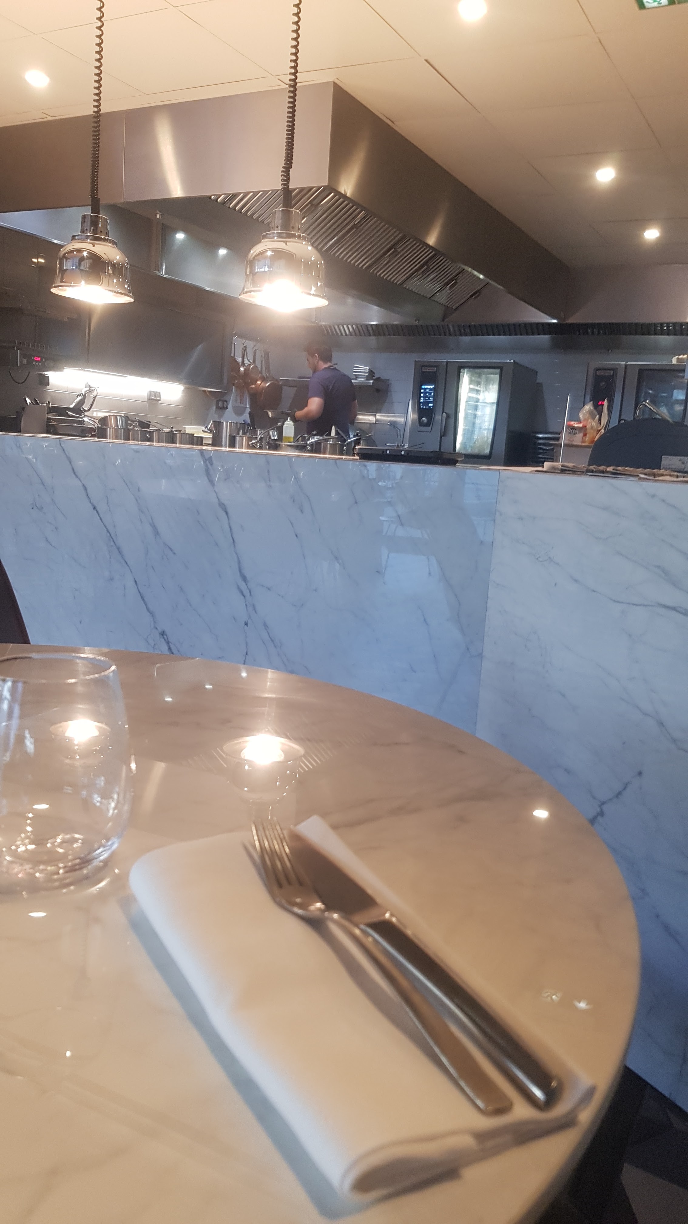 Accueil et service chaleureux, de bon conseil et agréable. Nous sommes venus un midi, rapport qualité/prix au top avec des plats bien présentés et goûteux tout en étant très copieux. Accord mets et vins parfait sur les conseils de la serveuse. La cuisine est visible et c’est intéressant d’observer ce ballet bien rôdé. Un plus certain les tables sont bien espacées. Le lieu est par contre un peu impersonnel.
