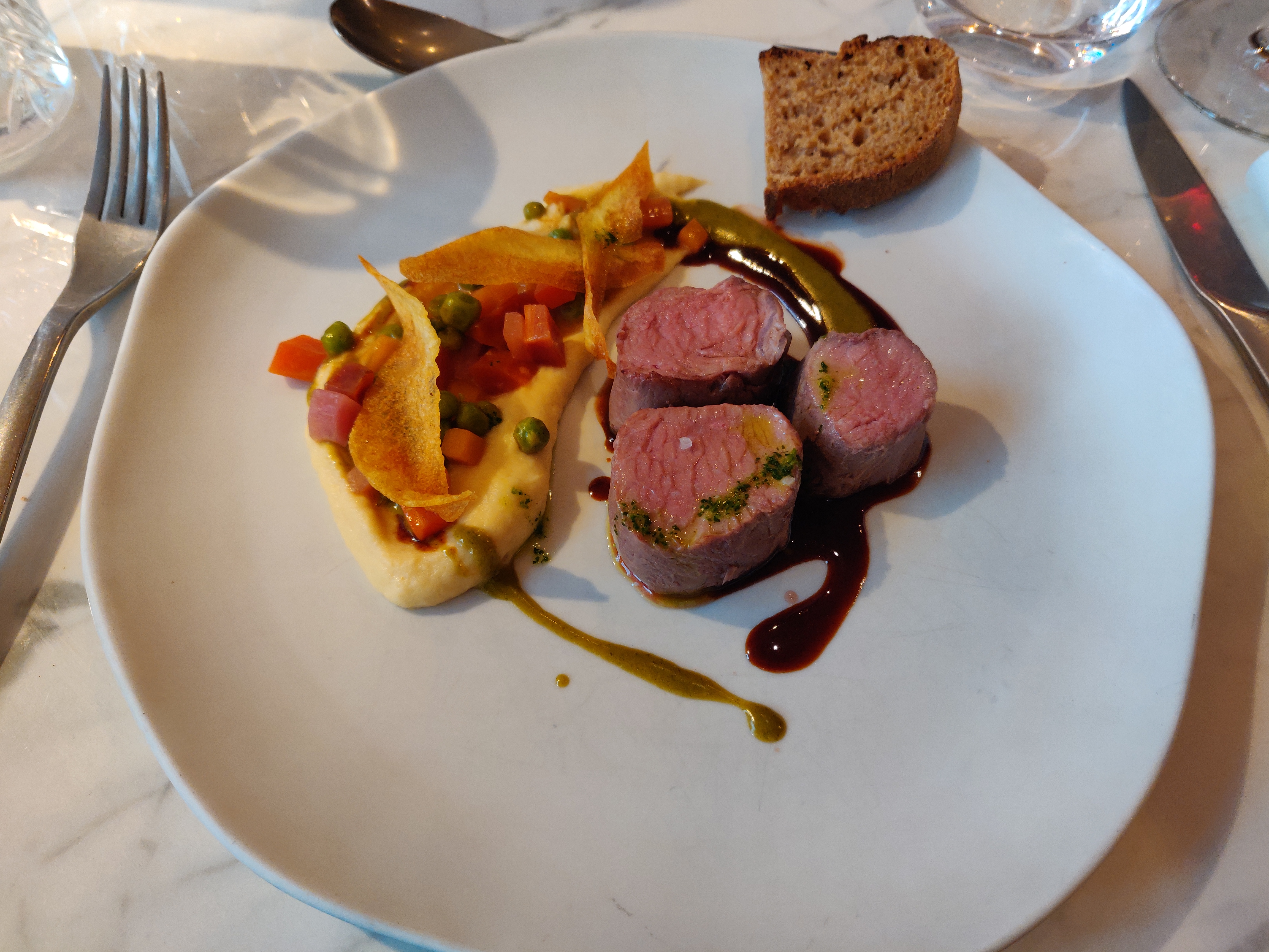 Trop de saveurs: tout est mélangé. Espuma, mousse, écume, purée, légume, jus, viande … un peu trop, non ? C’est bon, mais un peu de simplicité ne ferait pas de mal.