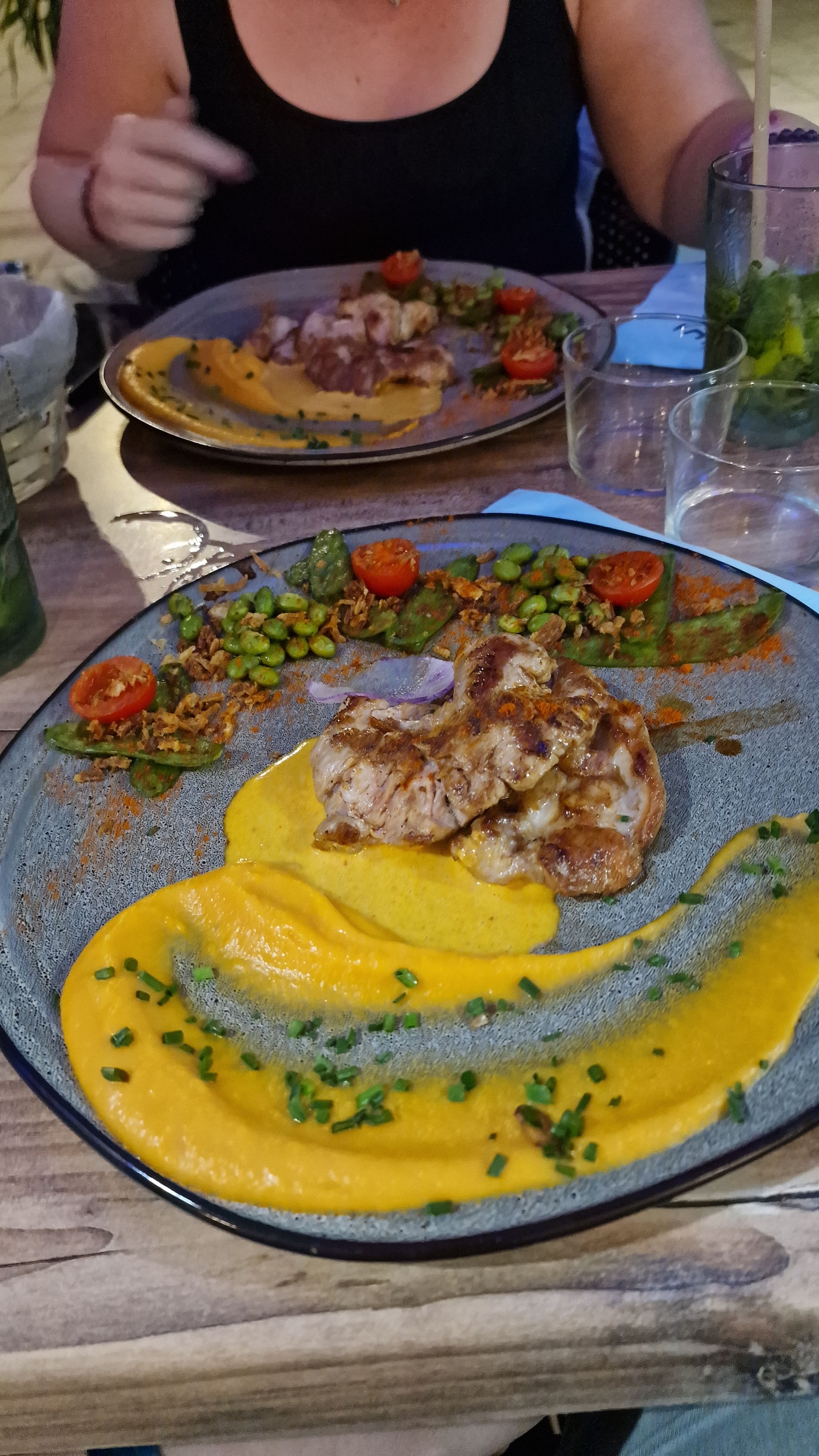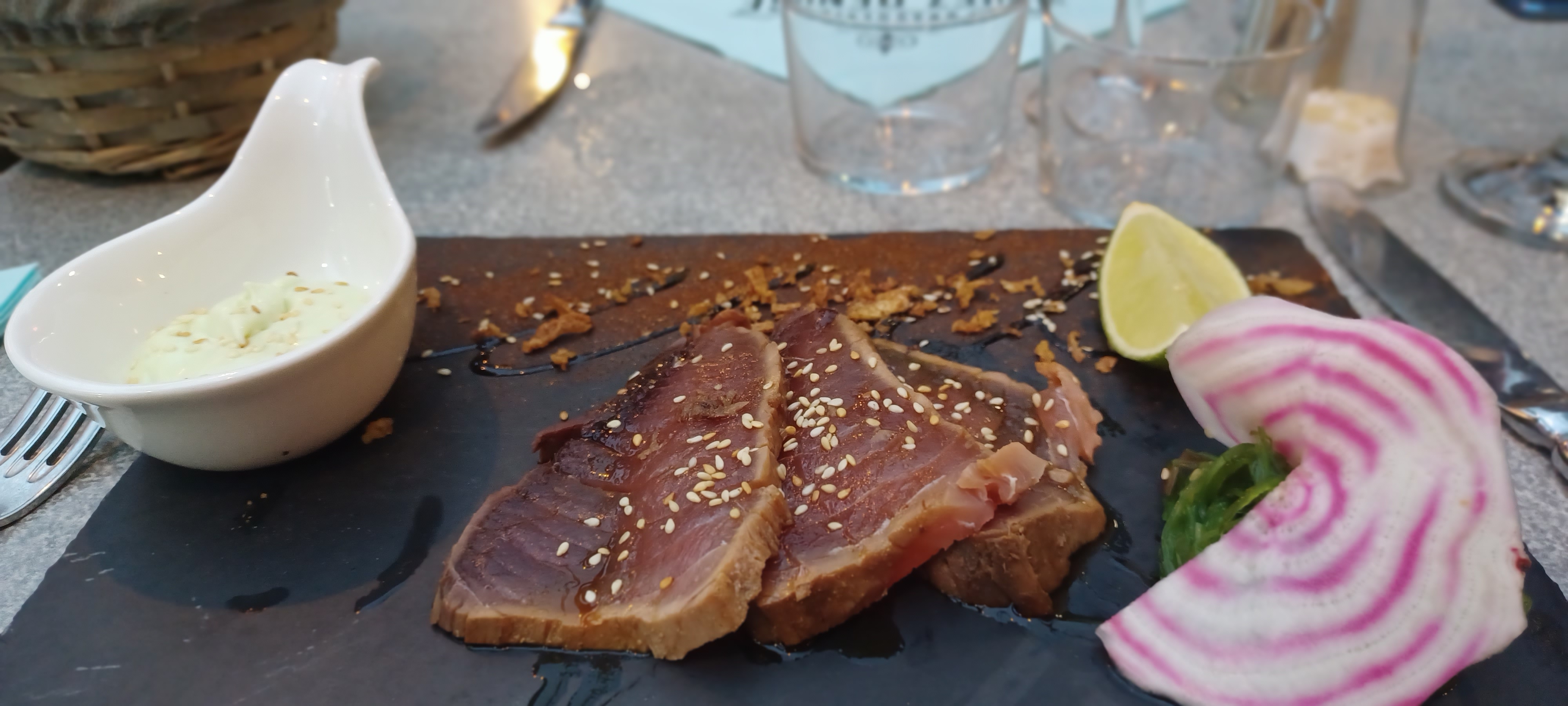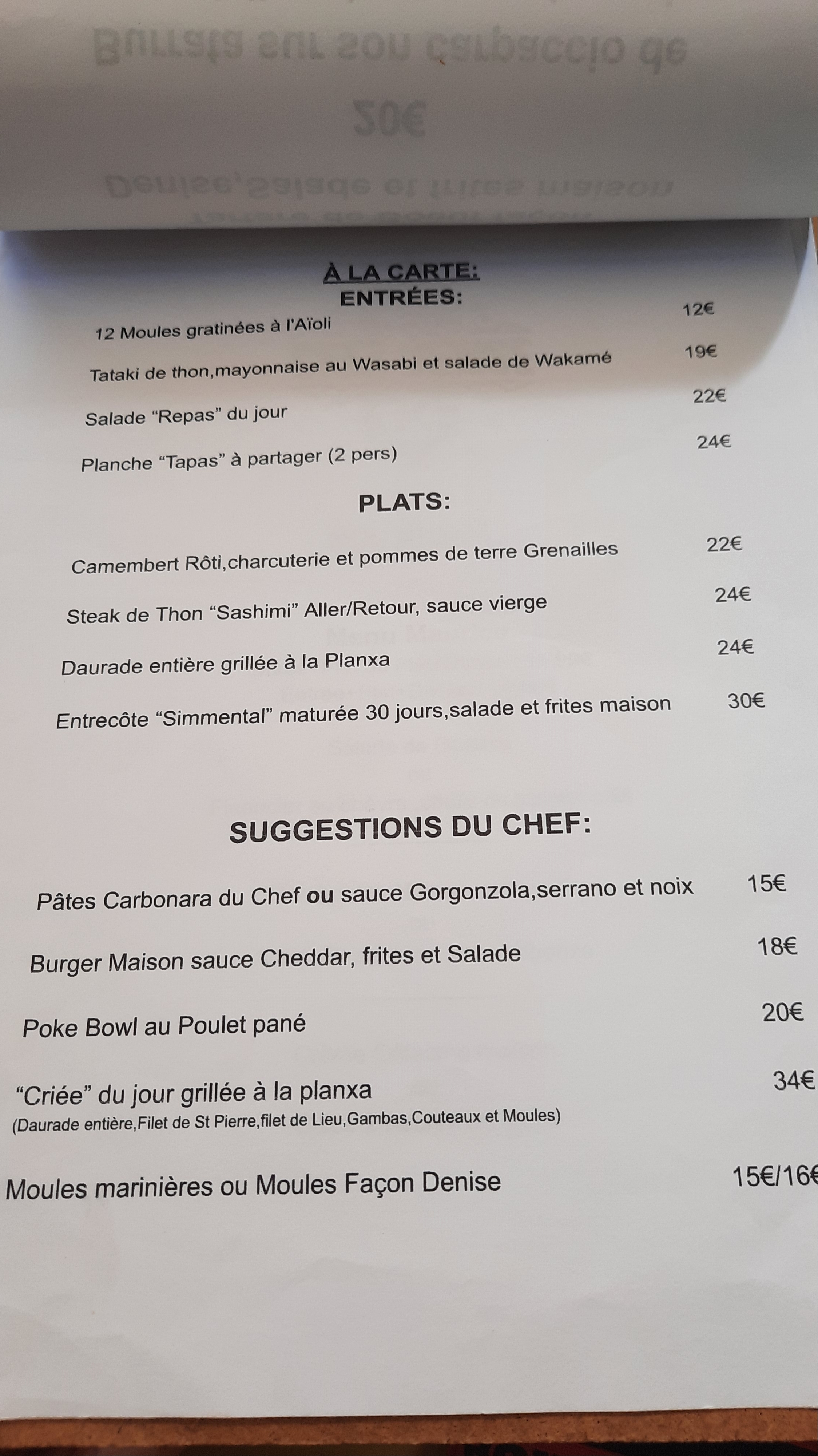 Première soirée, le tartarte façon Denise, tout simplement excellent, ainsi que le poulpe, seconde soirée, la table réservée sur parole, respect, donc steak et daurade, tout simplement excellent, tout comme la gentillesse de ce restaurant, rare sur une côte touristique, nous reviendrons