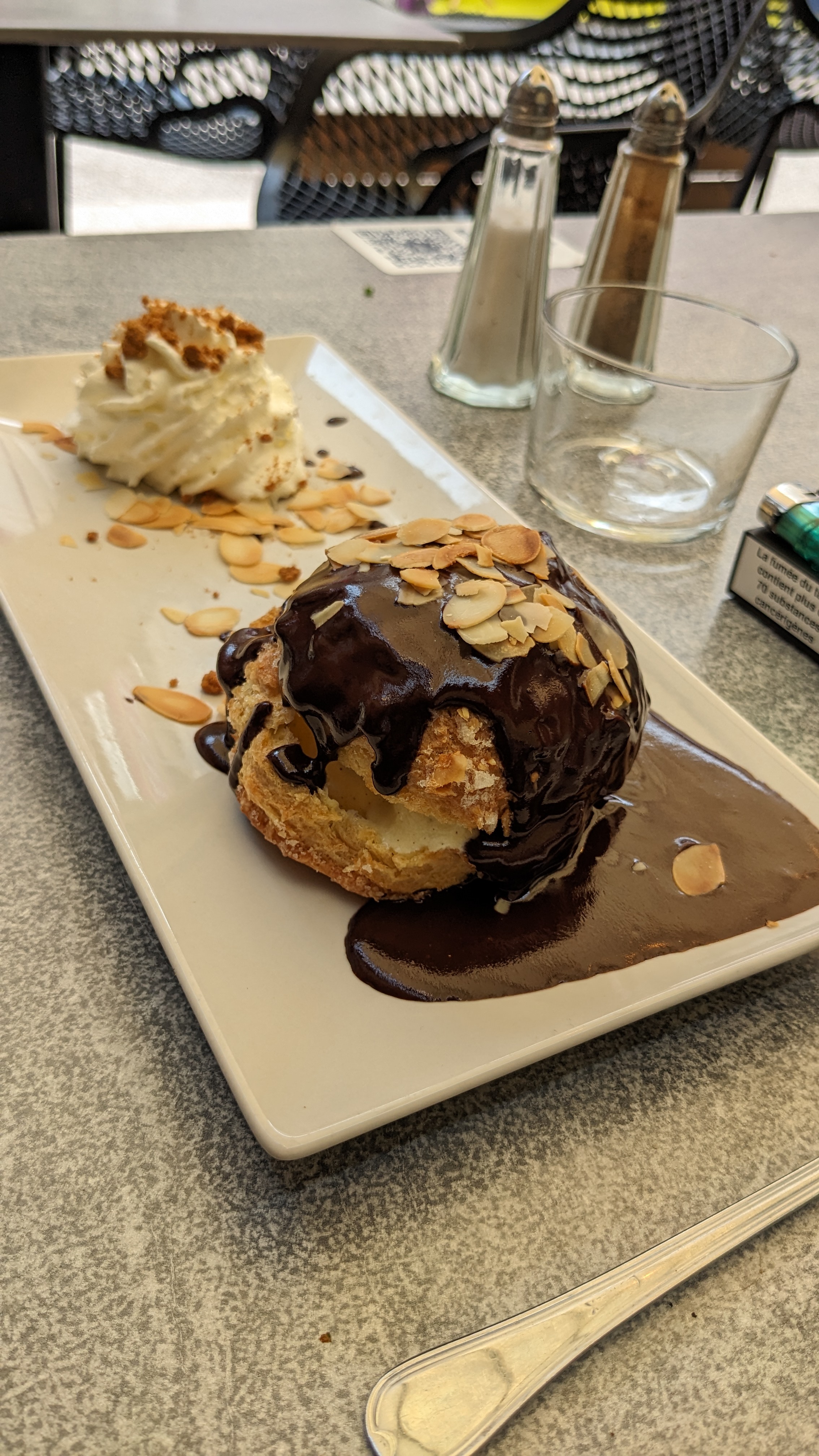 Décevant,!!! Nous avions choisi plat et dessert. Une languette de purée et 2 minuscules morceaux de poisson qui n’étaient pas du jour, vu l’aspect et le goût. Attente très longue pour le dessert, qui s’est révélé être très moyen . Pour finir, addition énorme avec le dessert compte 2 fois. À bannir……
