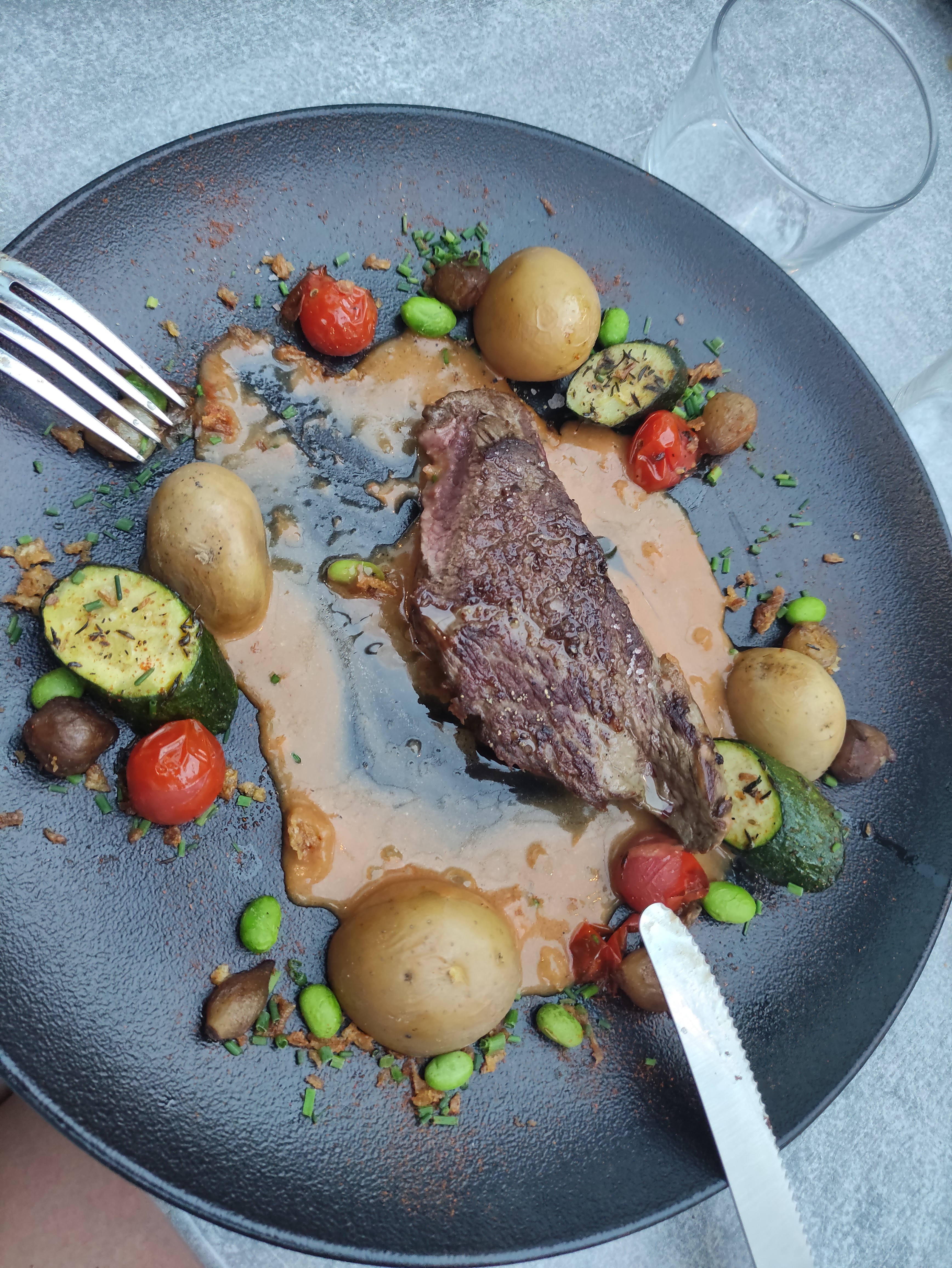 Bon repas mais il faudrait adapter les accompagnements selon le plat choisi car avons tous le même... Si l'on veut des frites à la place, c'est en supplément 😕 Pour la viande, mettre la sauce à part car très sucrée et de ce fait dénature le goût. Avons évoqué cela avec le serveur qui a su être à notre écoute.