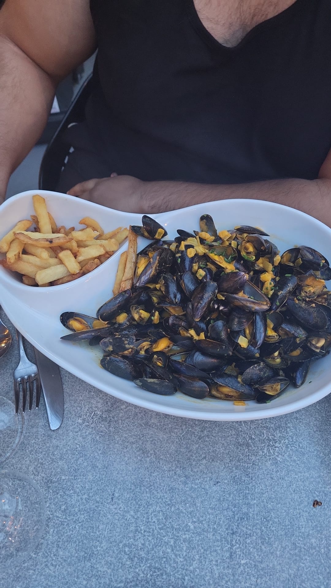 Service très agréable, moule fraîche frites maison un régal Rapport qualité prix correct