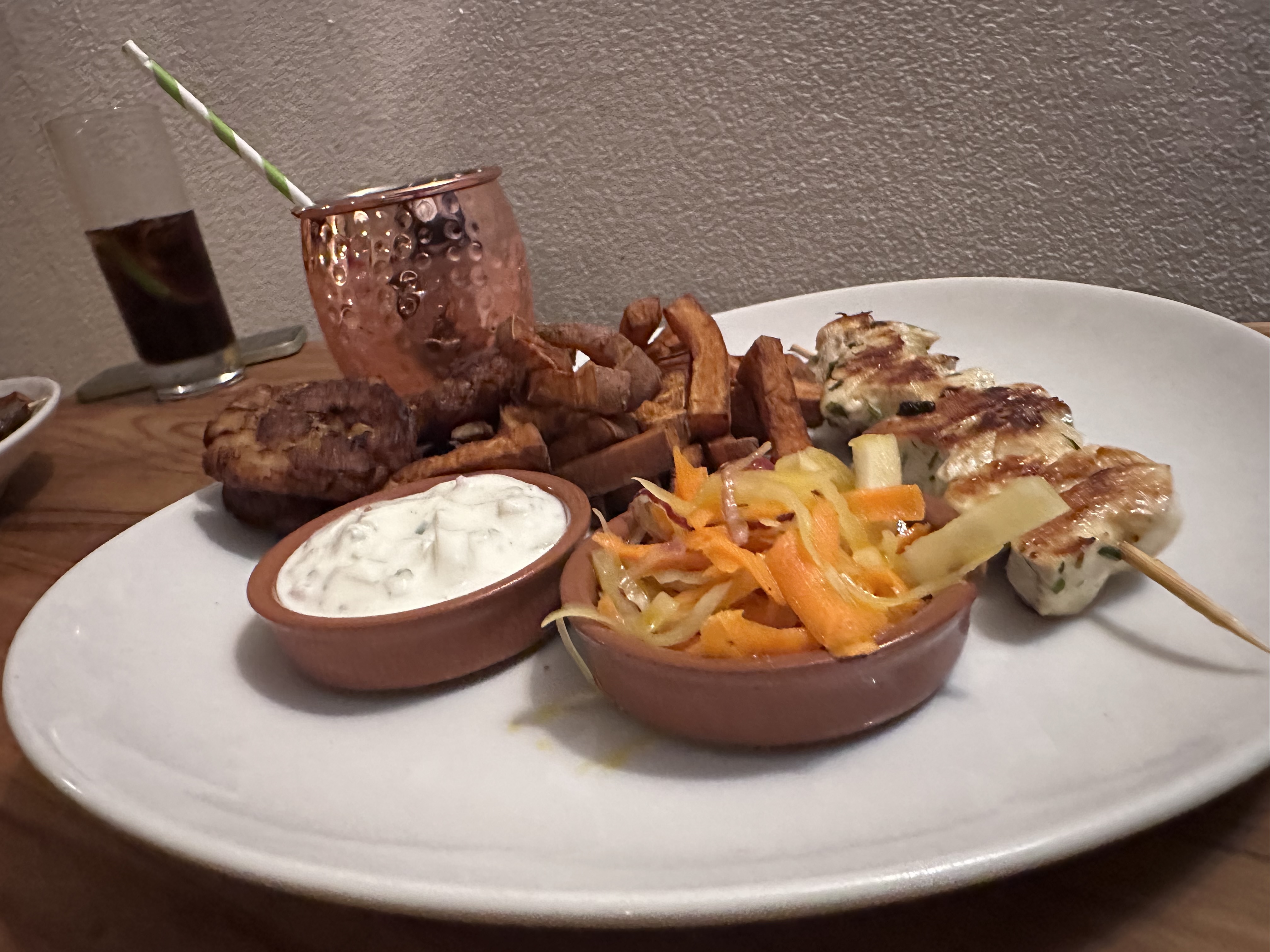 Un très bon tipunch pour commencer et des brochettes de boeuf délicieuses, glace à la cannelle excellente ! À recommander