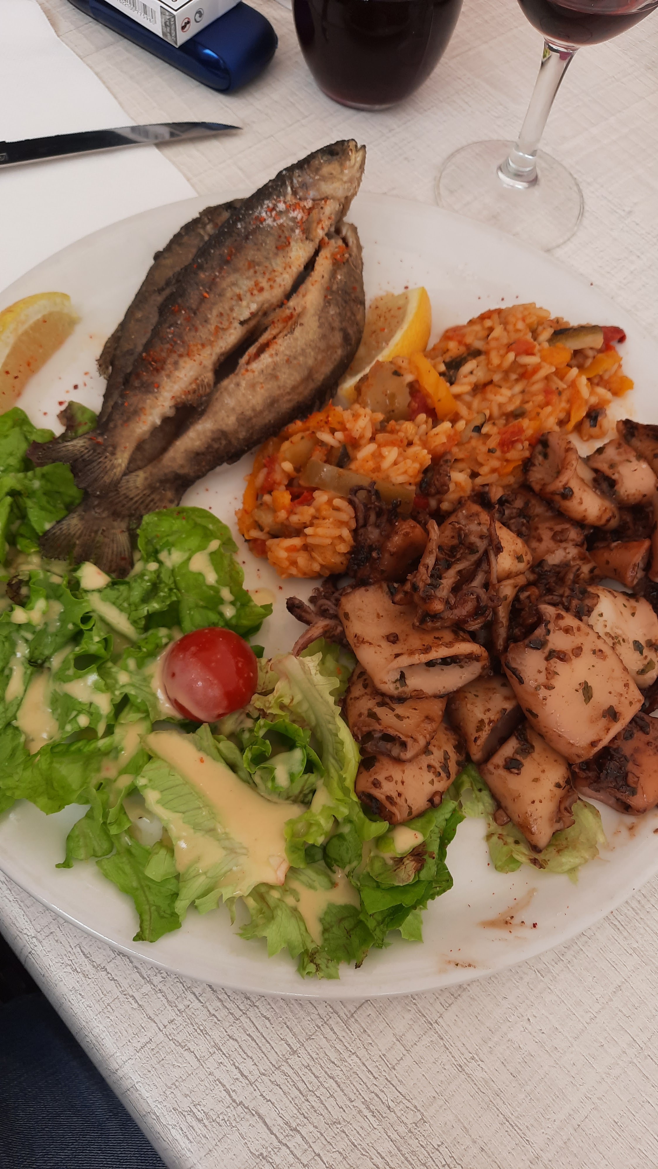 Mi-Septembre, un soleil et une chaleur de dingue, les restaurants bondés de monde, les serveurs obligés de courir dans tous les sens avec leur masque. Malgré celà que le repas fut appréciable. Spécialités succulentes, service effectué avec grande sympathie et efficacité malgré le monde. À recommander et à refaire pour y gouter d'autres plats locaux !