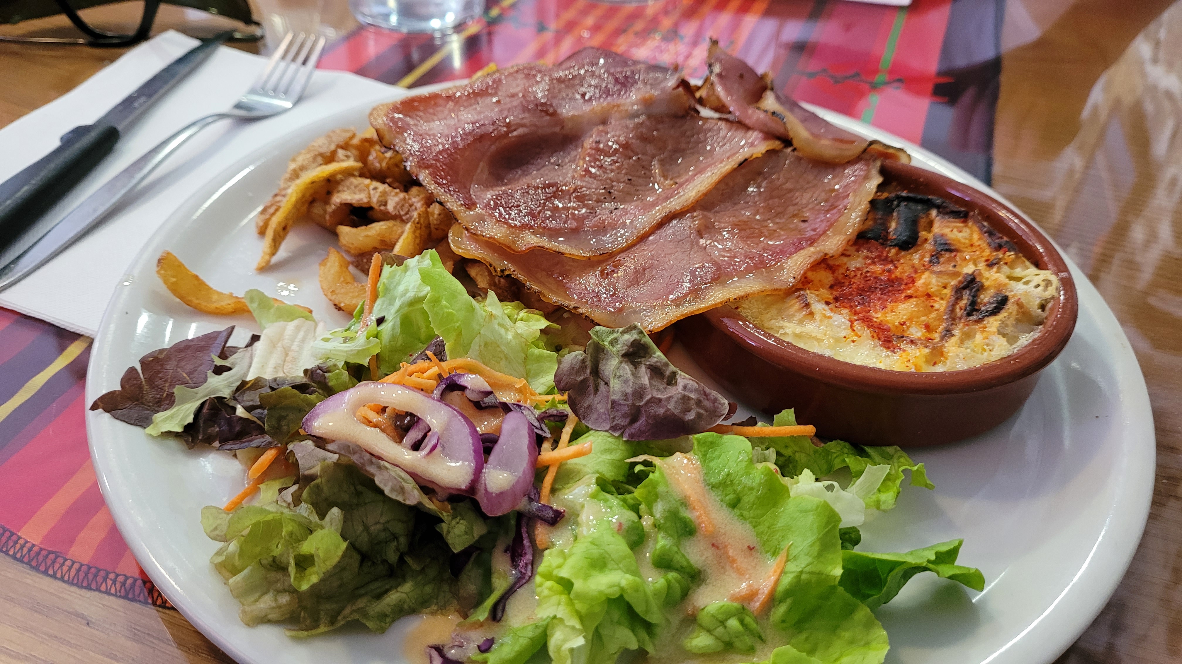Assiette copieuse et très bonne, choix variés et service rapide. A conseiller. Lorsque le marché est présent (à côté du restaurant) venez de bonne heure car après il y a la queue pour avoir une table.