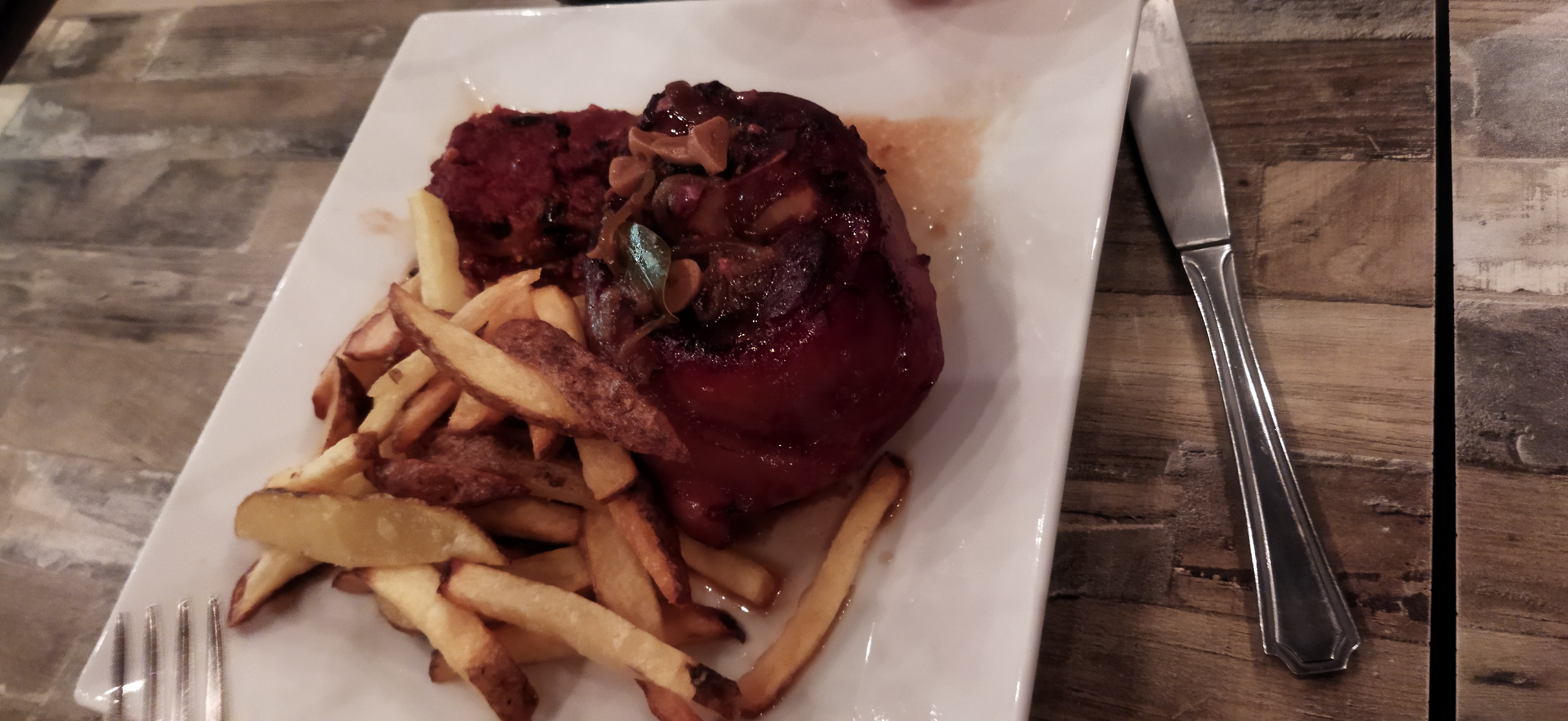 Comme d'habitude la cuisine portugaise nous ravit par sa générosité....mais manque d'une petite sauce sur le cochon et légumes frais en manquent de cuisson.... Essayer la cuisine a la vapeur pour les deux bien sûr 🥂