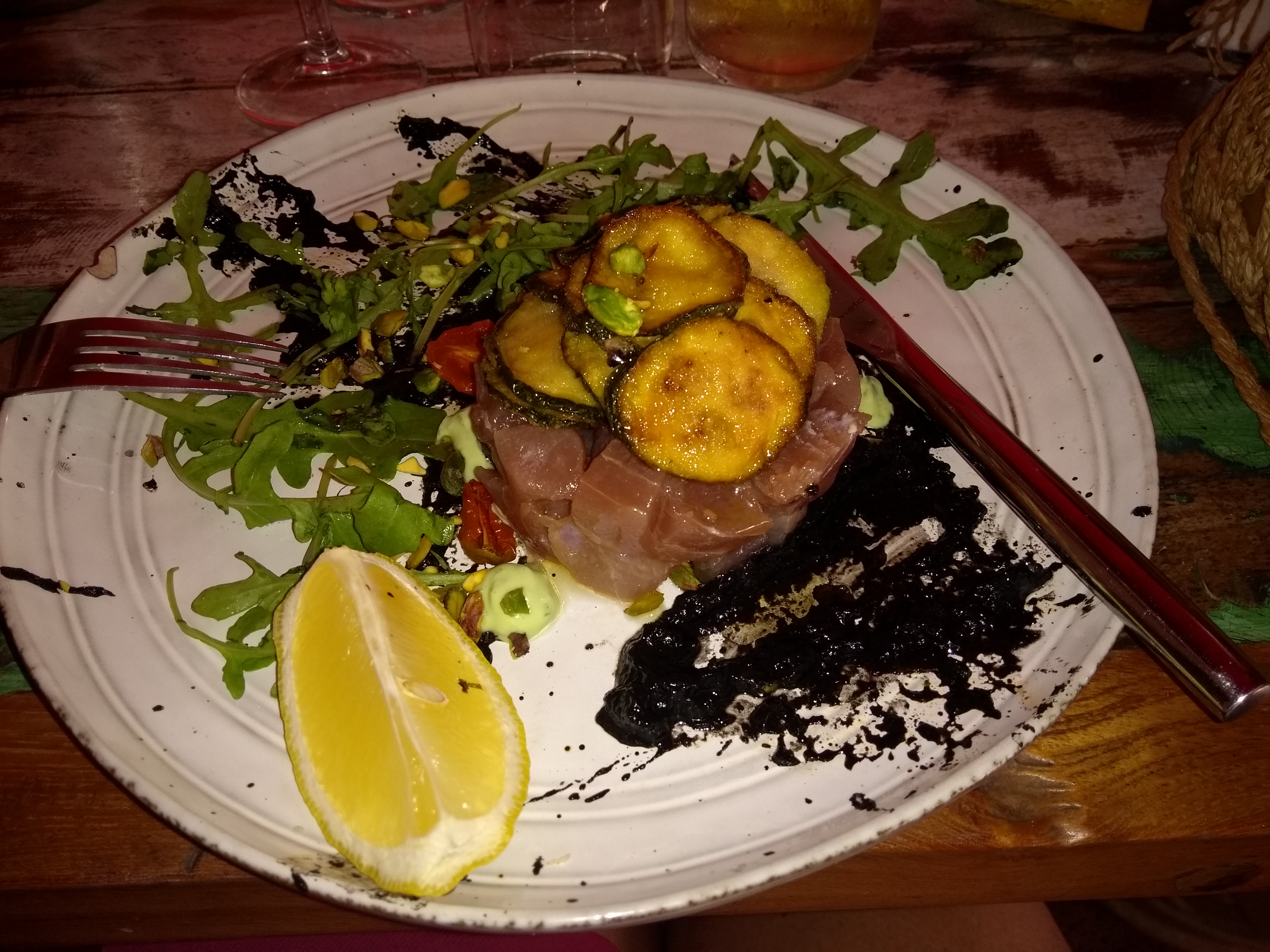 Accueil et terrasse agréables..mais tellement déçus par les plats..poulpes grillés immangeables, secs, plat renvoyé et remplacé sans pb..mais l'avis ne peut pas être Supérieur à 2* vu notre déception