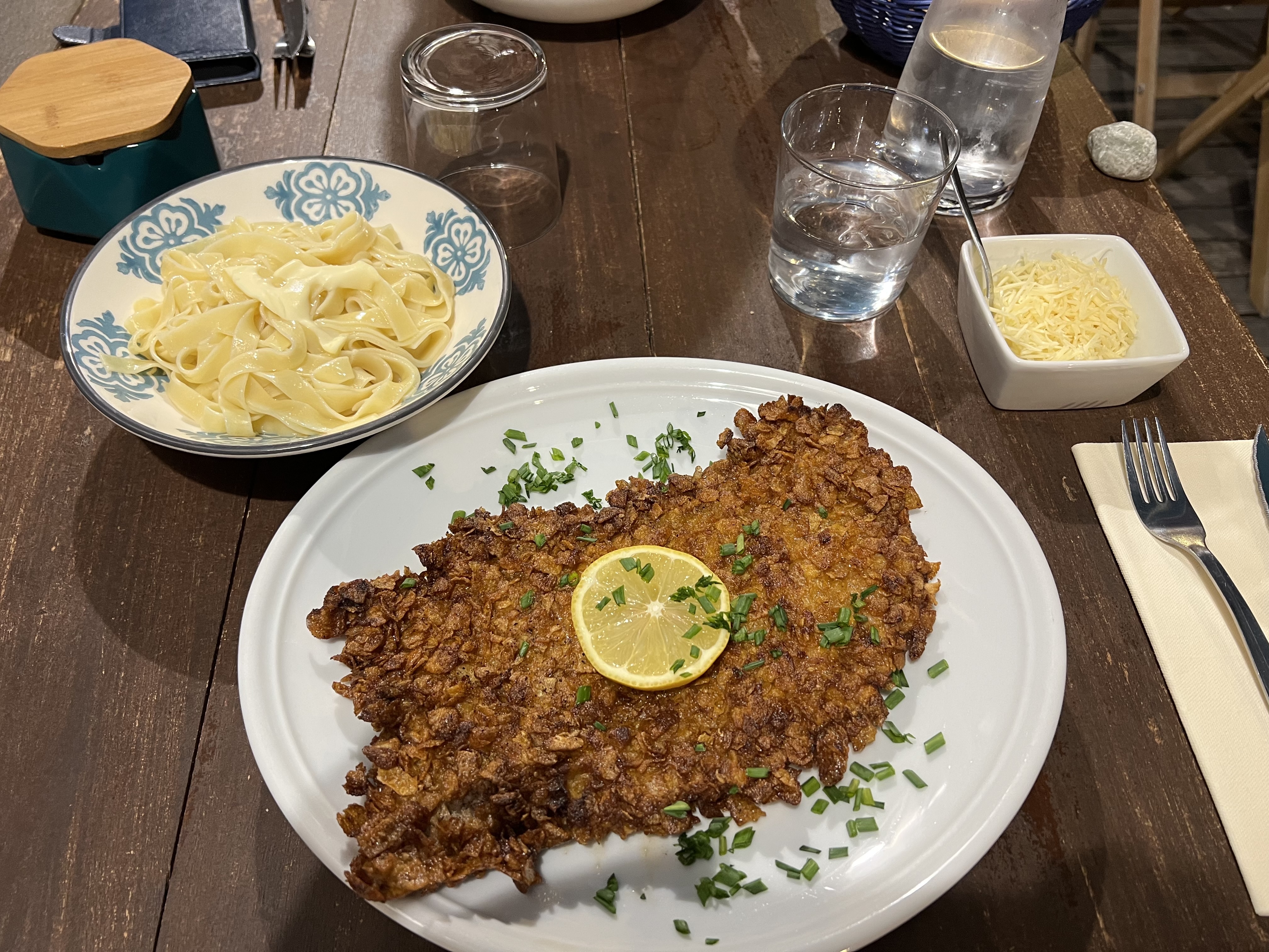Très bon restaurant familial, une des meilleures escalope milanaise que j’ai jamais mangé, à l’ombre et au calme d’une petit rue. Nous avons passé un très agréable moment et avons très bien mangé pour un prix très raisonnable. Nous le conseillons vivement.