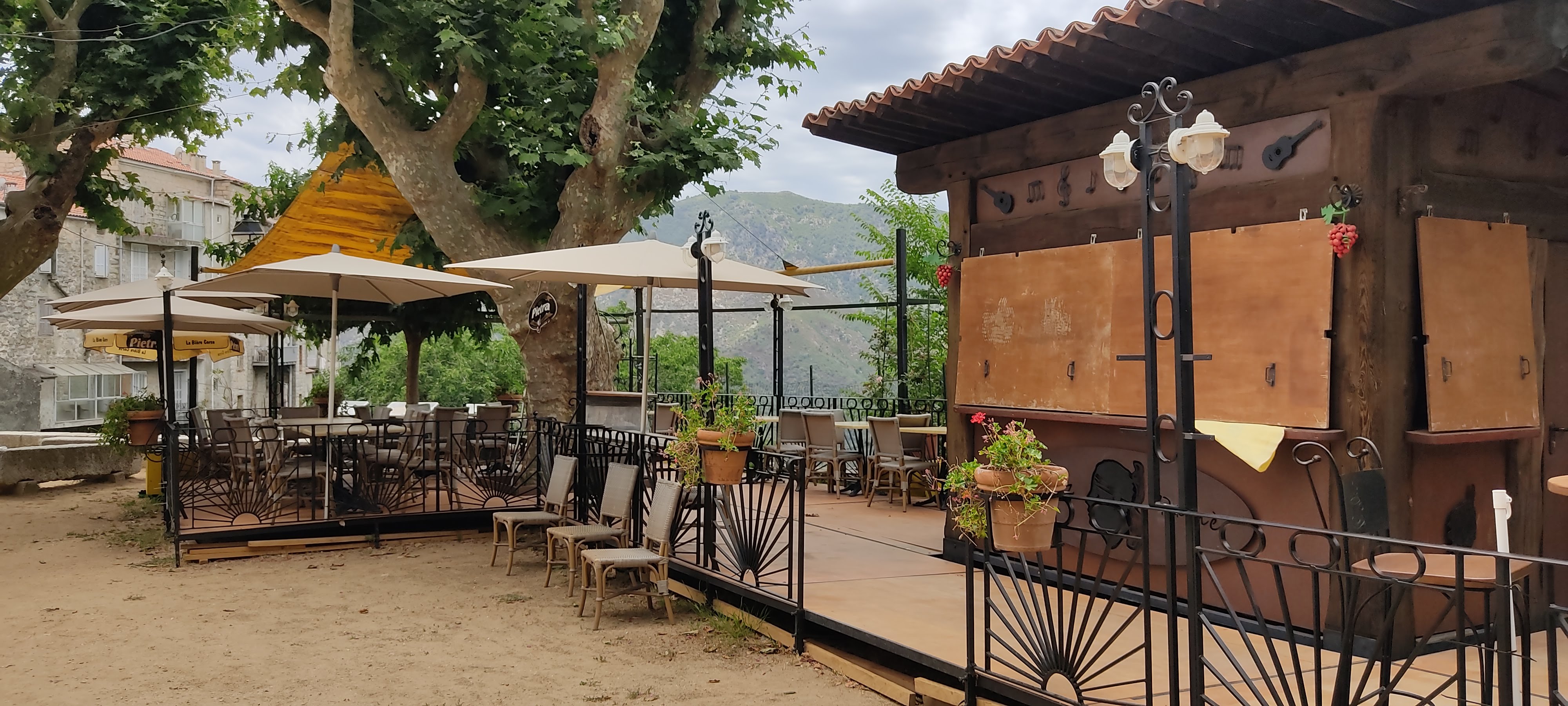 nous avons découvert ce charmant village et avons été attirés par cette terrasse ombragée et une plat du jour alléchant (veau brioché puree maison sauce cap corse). C'était servi copieusement et cuisiné maison.