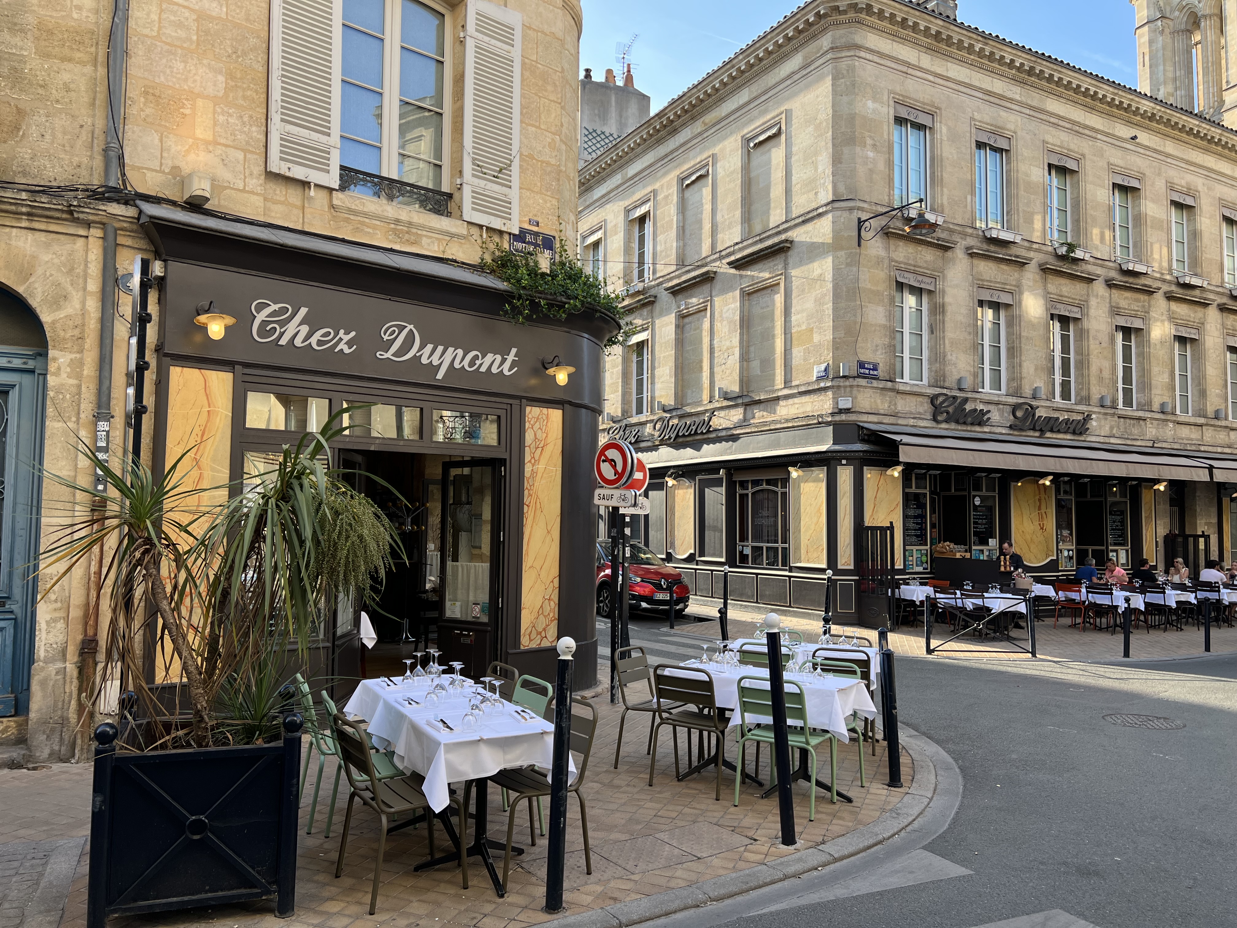 Chez dupont, je viens depuis 20 ans, à chaque passage à Bordeaux. C est pour moi incontournable pour la cuisine, le service exceptionnel et cela au fil des changements naturels du personnel, toujours la même amabilité et disponibilité, et le sourire extra large de tous et toutes malgré les masques cette année. Et pour finir, l emplacement dans ce quartier et cette rue si typique. incontestablement, je recommande absolument. 9 sur 10.