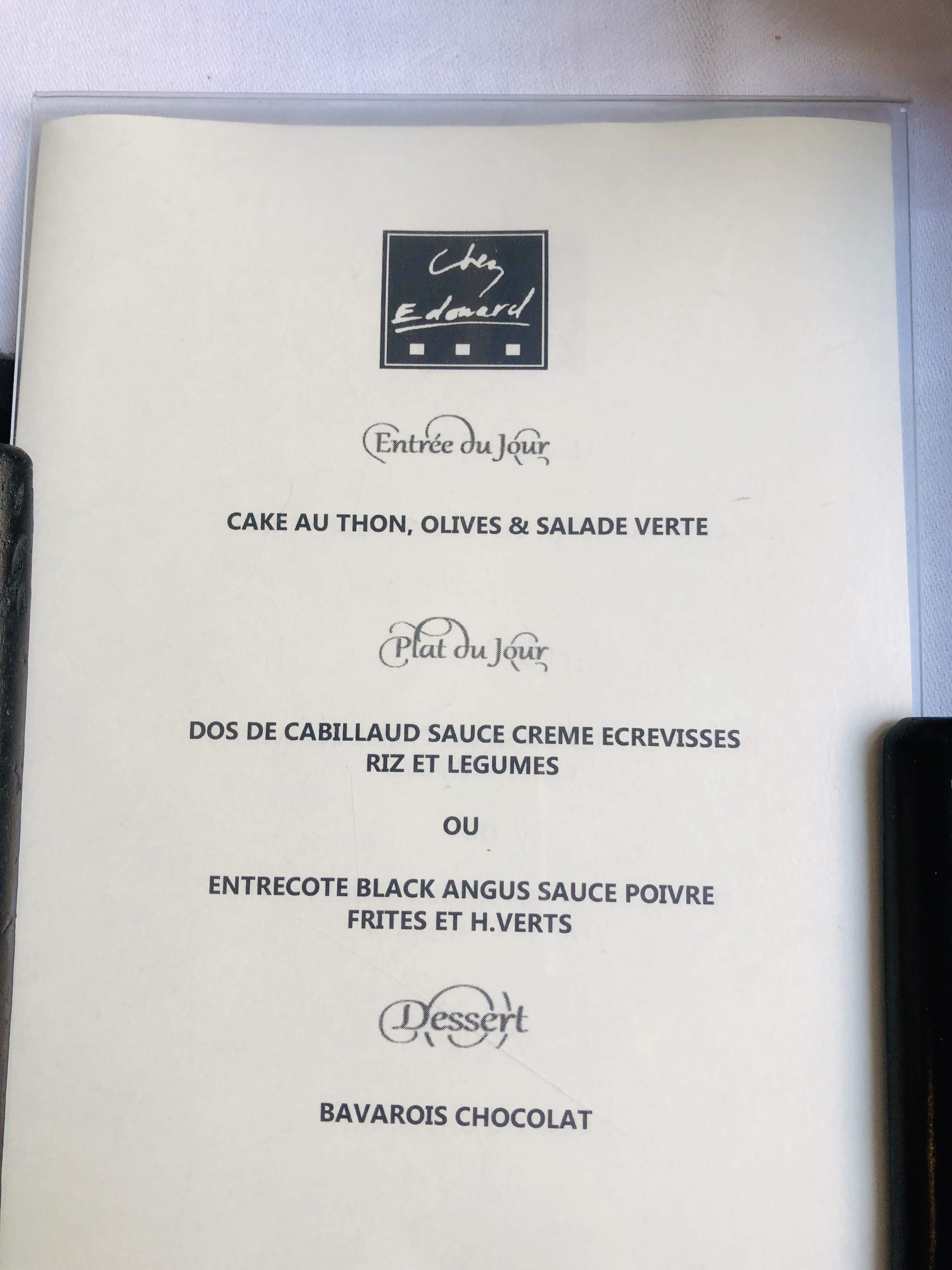 Ce restaurant est situé dans un endroit très sympathique, localisé à côté d’un beau théâtre, le théâtre Édouard VII, d’où le nom chez Édouard, j’imagine… Le plat et l’entrée étaient très bon, la viande bien cuite, le seul point négatif, à mon avis, est le service. Pourquoi ? Car malgré la sympathie des serveurs, arrivés à 13:15 il nous aura fallu attendre 14:30-45 pour recevoir nos plats et pouvoir enfin manger ! Malgré cela les petits pains chauds sont très bons et lorsqu’un serveur s’est trompé dans notre commande, elle nous a généreusement été offerte !