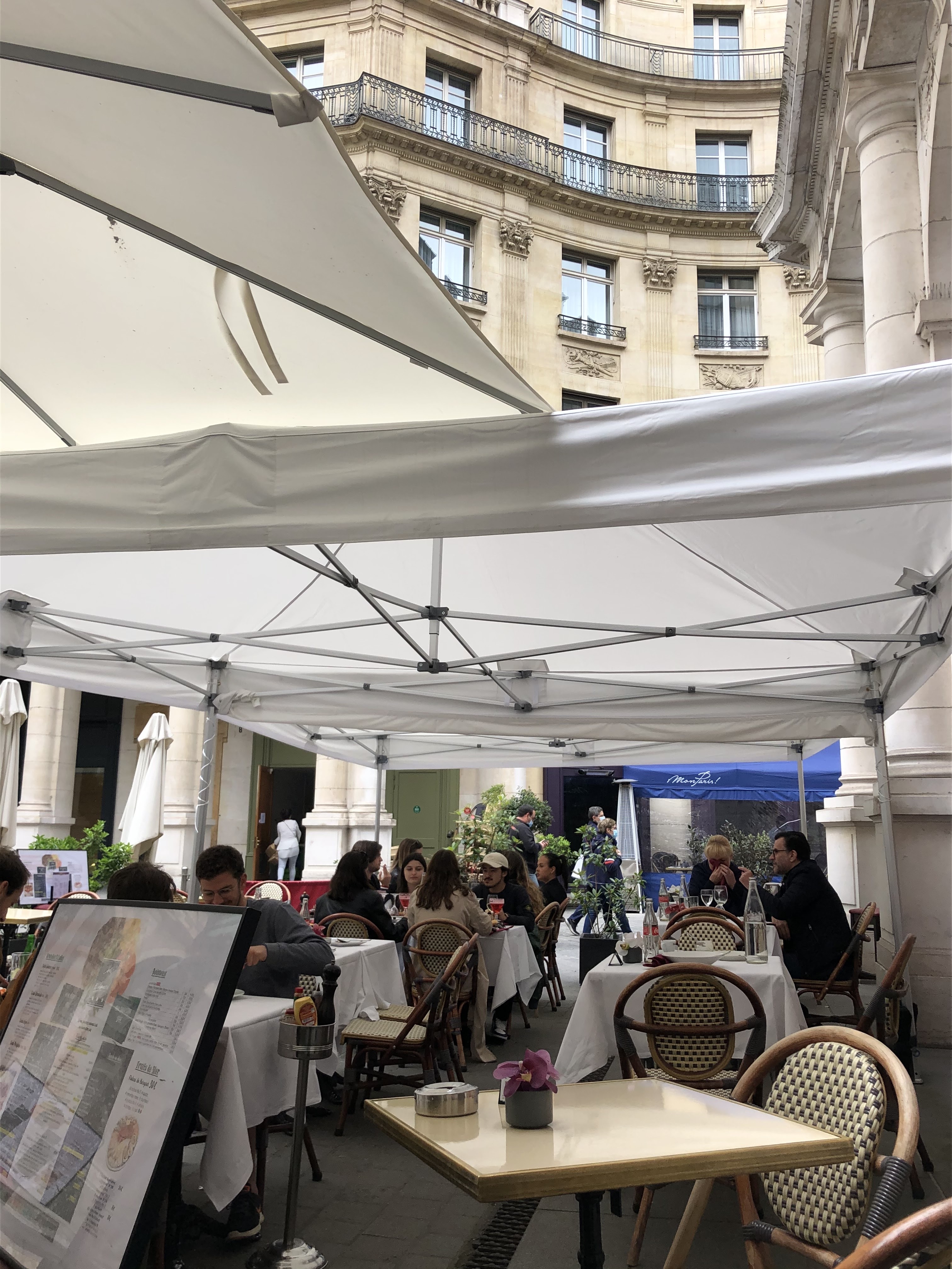 Très beau cadre situé dans un très beau bâtiment ancien en plein Paris avec une vue sur un monument pour ceux qui mangent à l’extérieur Très bonne cuisine Rapport qualité prix bon En entrée j’ai pris des escargots de Bourgogne c’était bon mais j’ai connue mieux En plat j’ai pris un poulet croustillant à la créma avec des tagliatelles un vrai délice je me suis régalé L’ambiance était très bonne pas bruyant comme les autres restaurant alentour Service impeccable Je conseille vivement