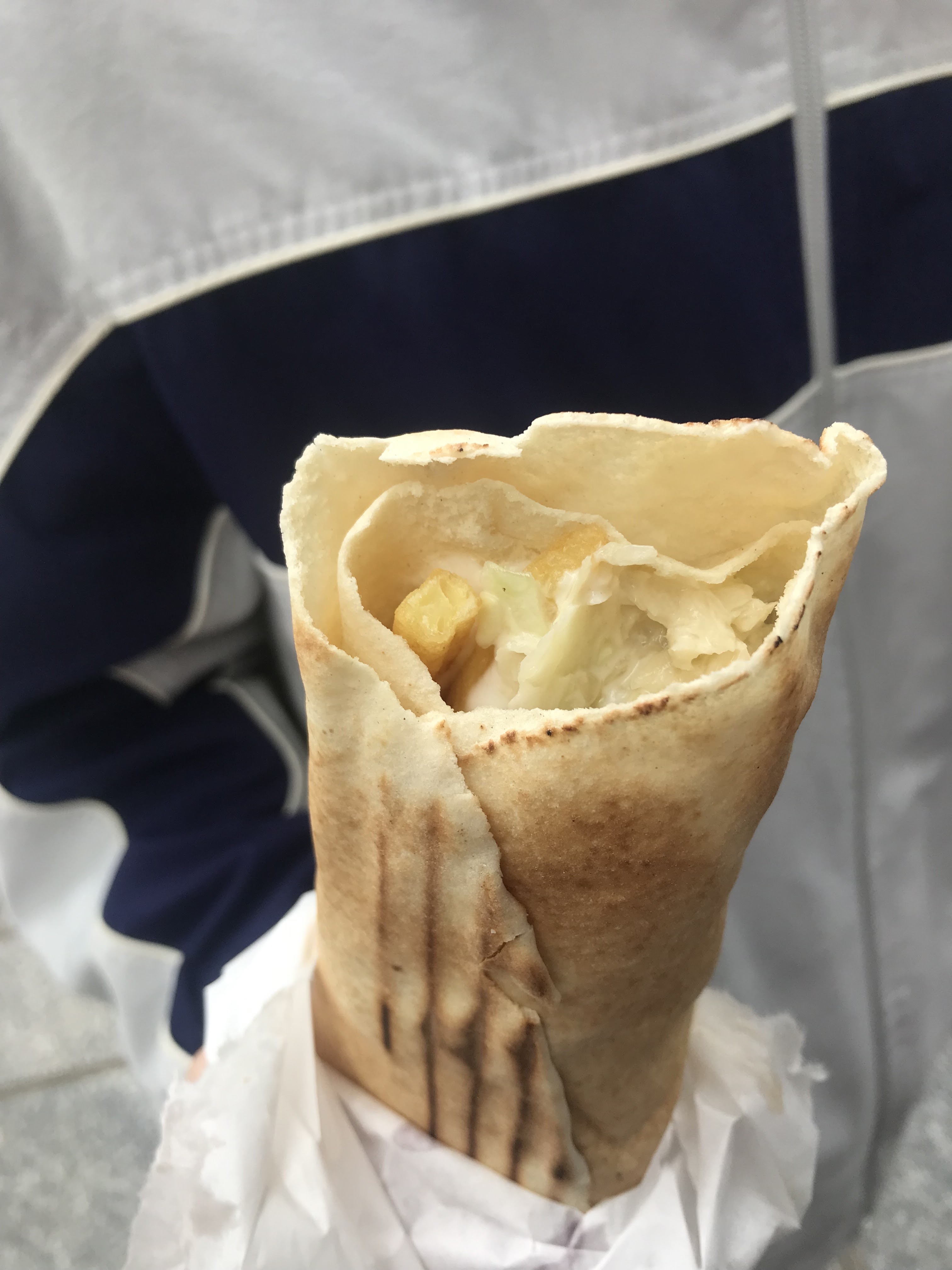 La shawarma poulet était un peu trop grasse à mon goût. Pas mal dans l’ensemble mais nous avions quand même toutes mal au ventre le soir même…