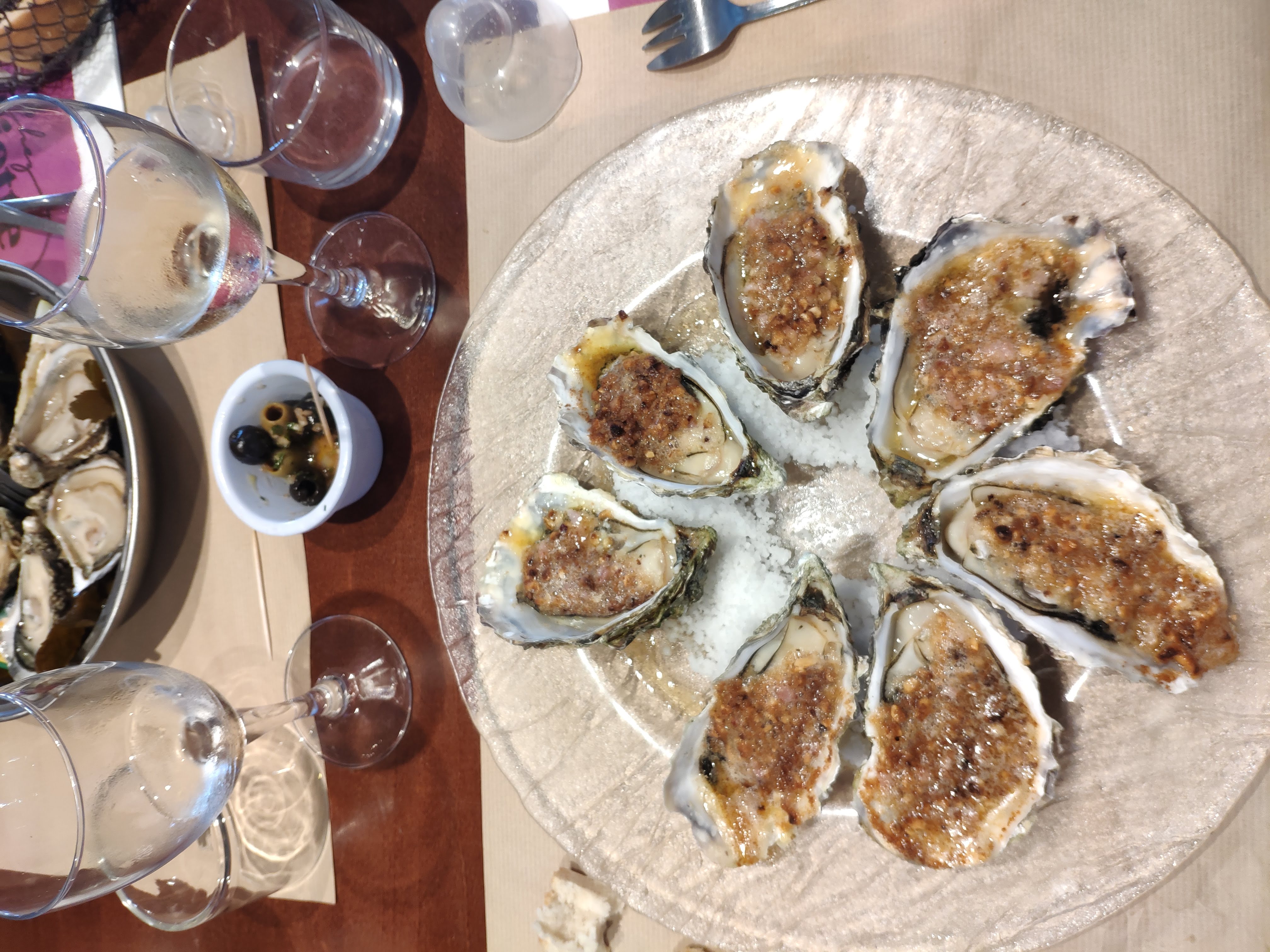 Les huîtres gratinées sont des délices, les huîtres crues ont un goût de noisettes et la fraîcheur exemplaire Le merlu grillé appoint Le seul bémol le café gourmand n'est pas à la hauteur du tout pour12,50 € Le service est très agréable et les serveuses toujours souriante