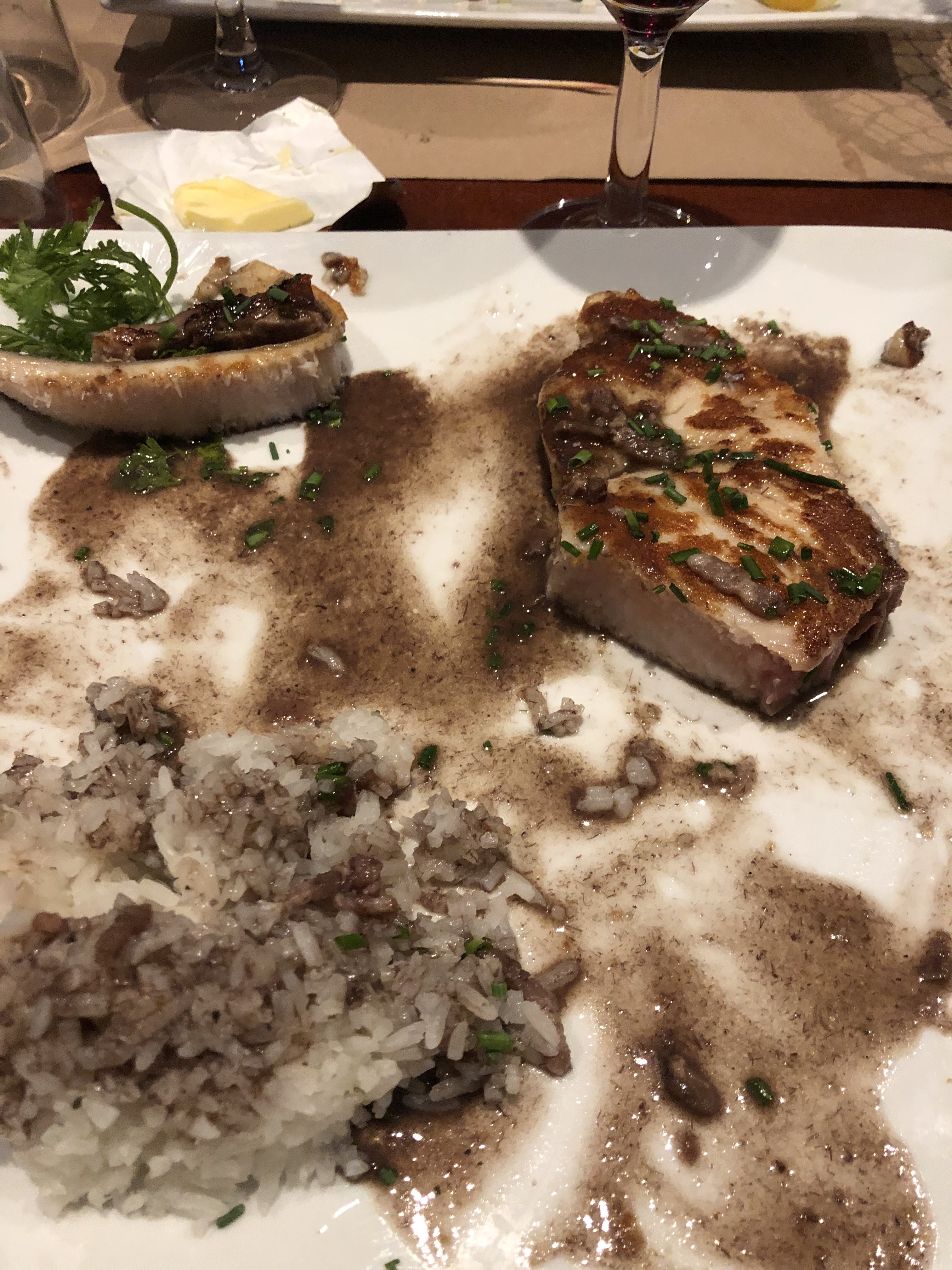 Très bon restaurant je me suis régaler avec le bar rissoto et ma femme une raies au beurre blanc ma fille allergie au poisson il ont proposé une volaille pdt un service assez rapide je suis la personne ou vous avez oublié le🔪 le patron voiequi je suis cordialement