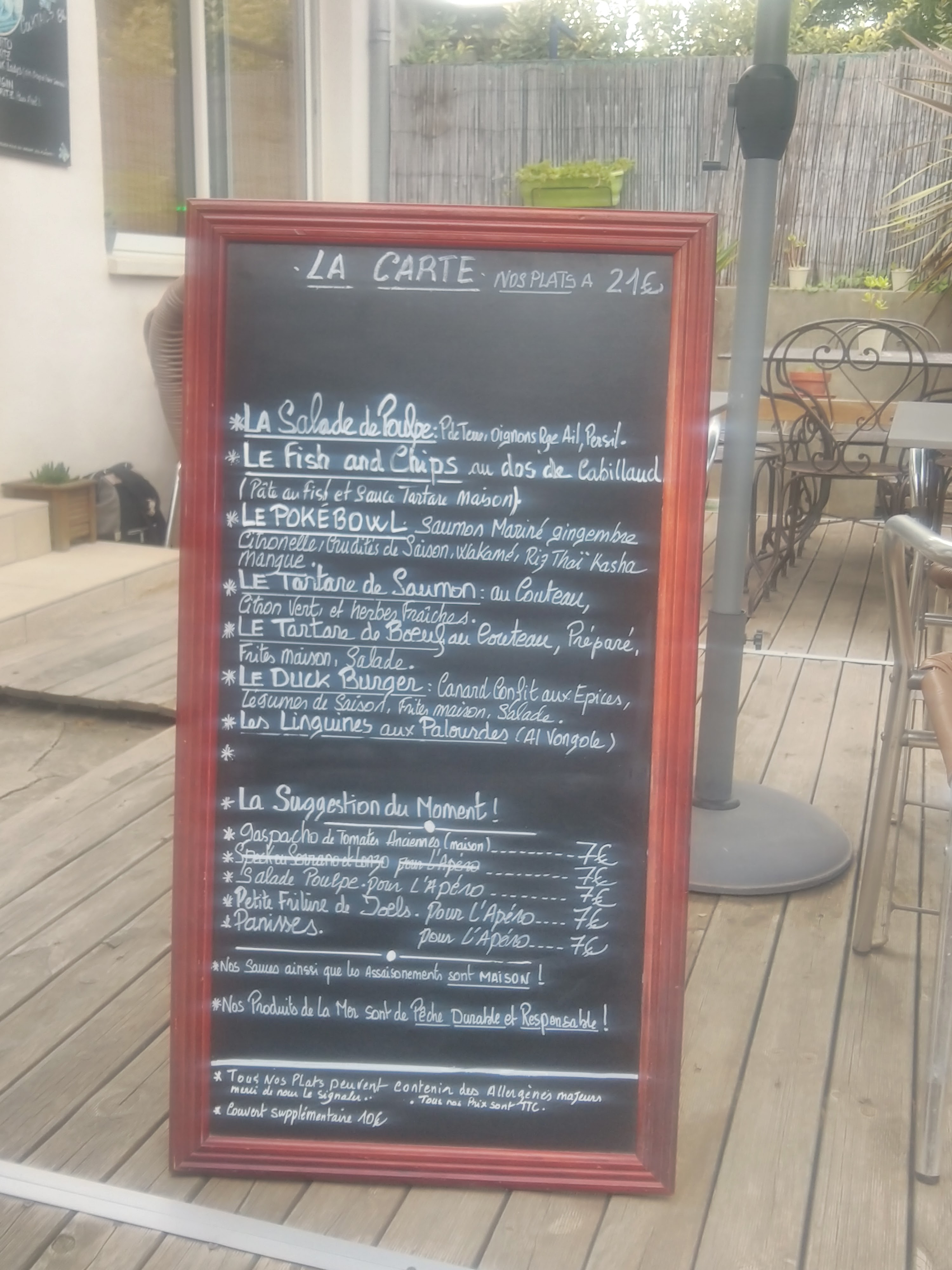 Petite pause dans ce restaurant bien tranquille accueil sympa petite friture de jols très bonne et cuite à point et pook ball excellent et tartare saumon excellent aussi ! Merci pour ce bon moment je recommande ++
