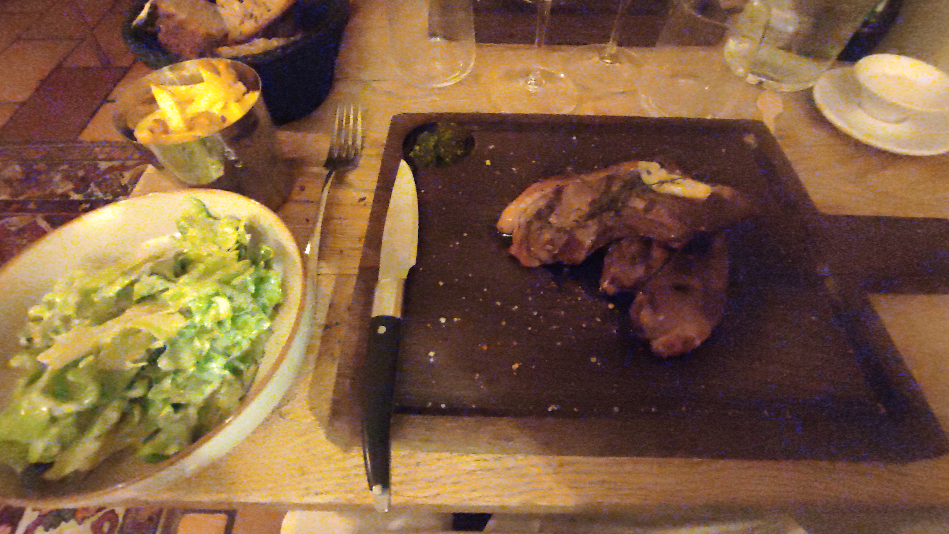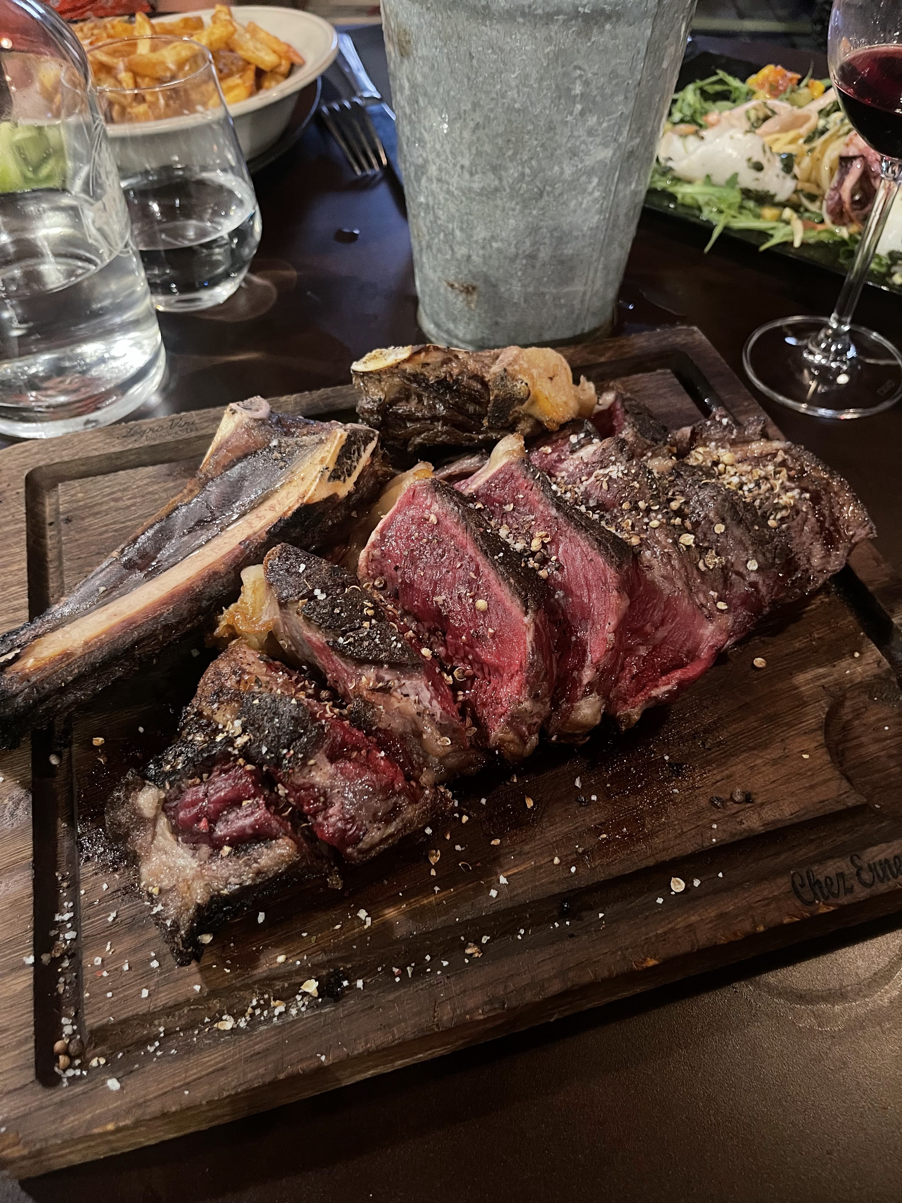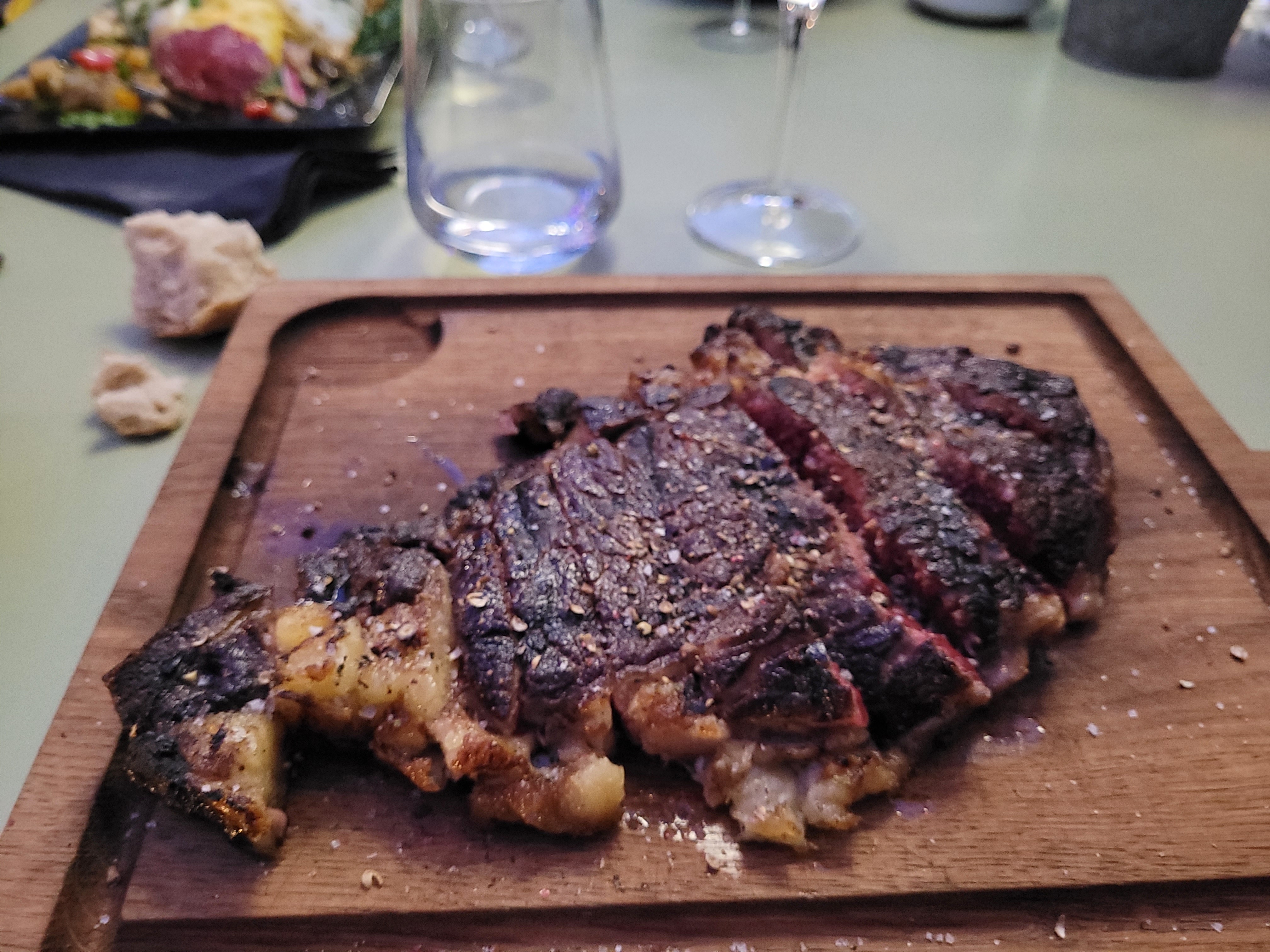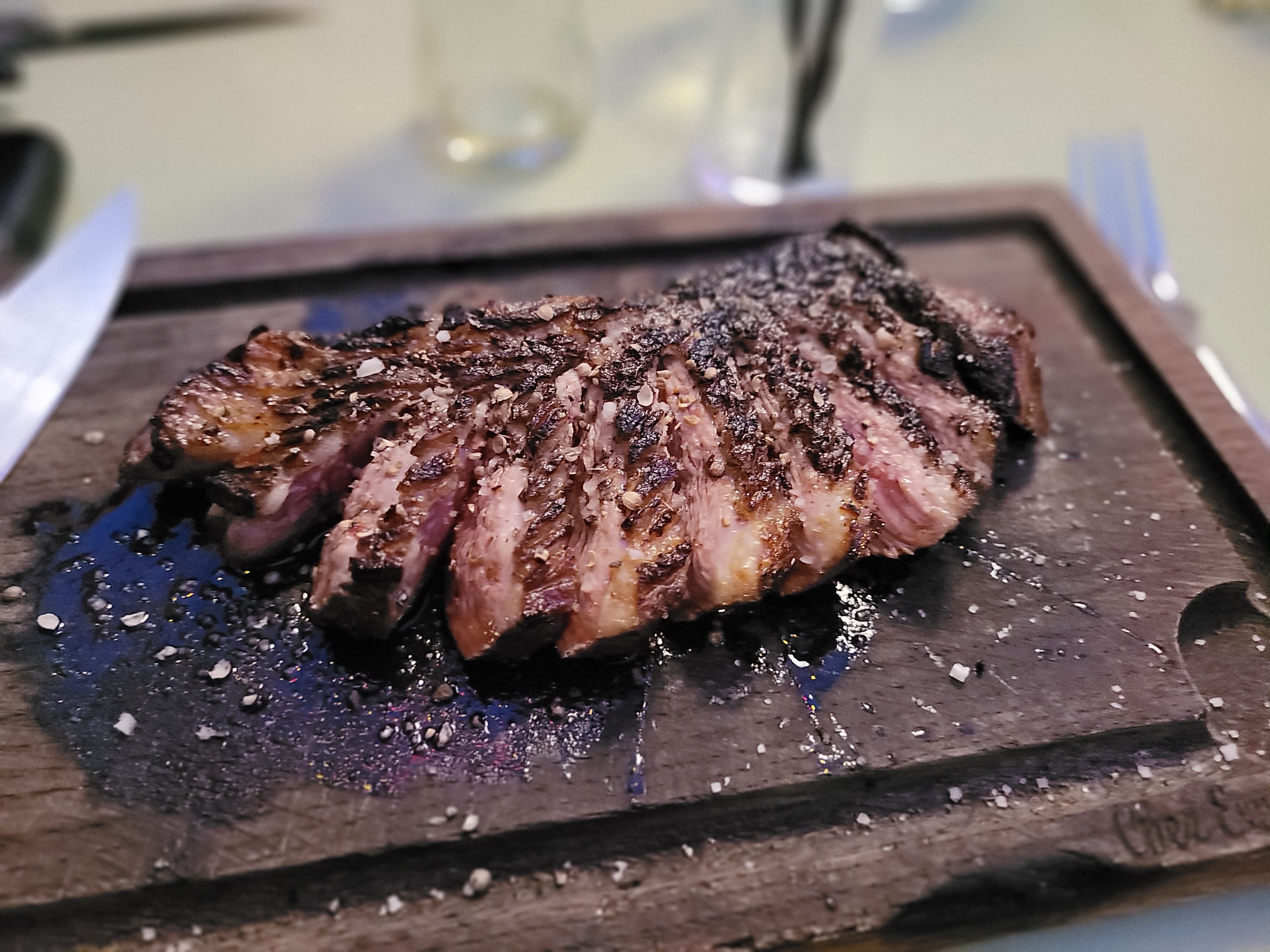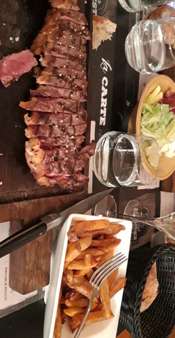 Une bien belle côte de bœuf cuite au feu de bois... Je recommande le vin en photo qui offre un excellent rapport qualité-prix.
