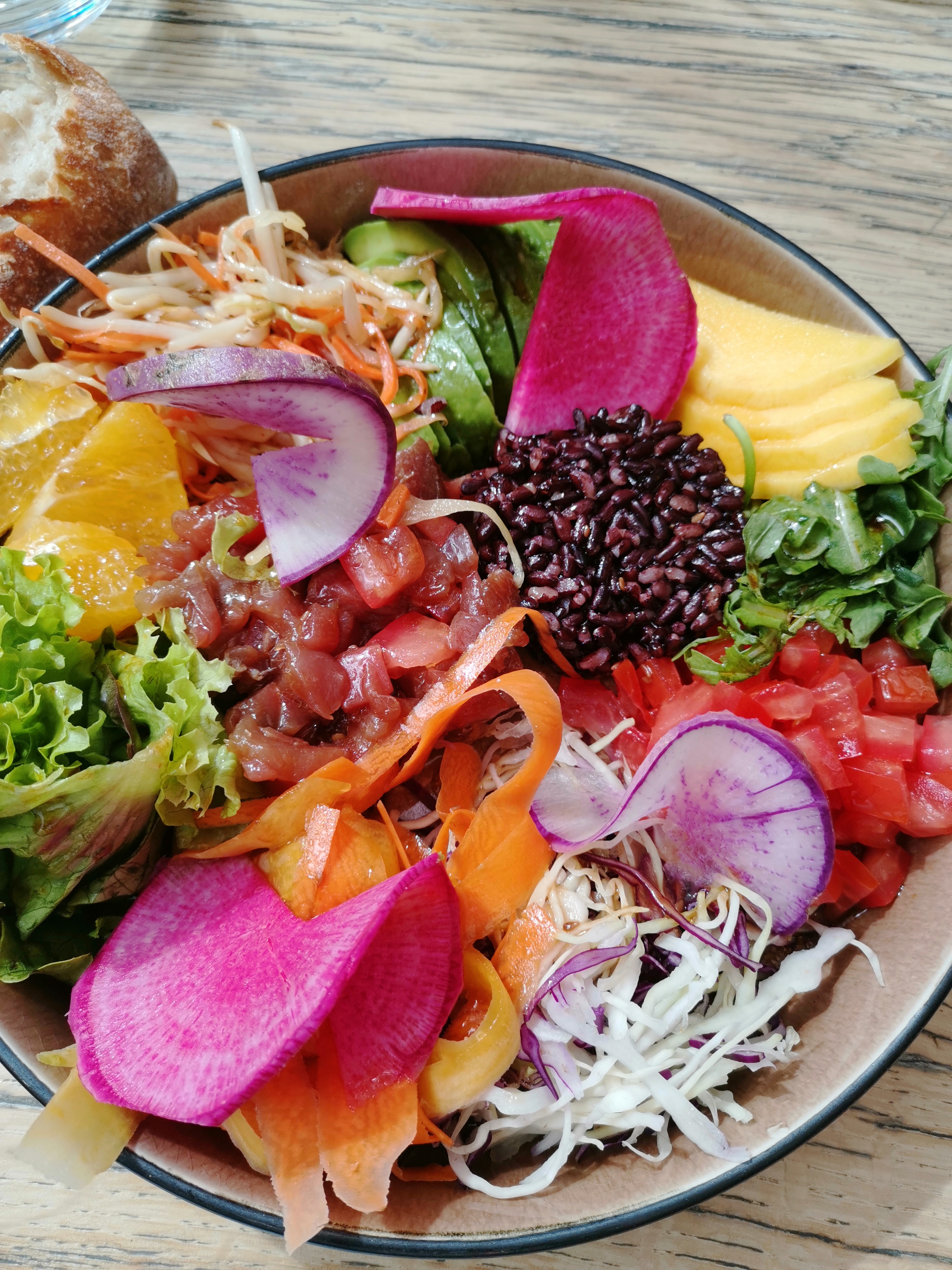 Plat excellent, salade colorée et délicieuse. La note reste un peu salée pour un midi, mais le goût l'emporte !!