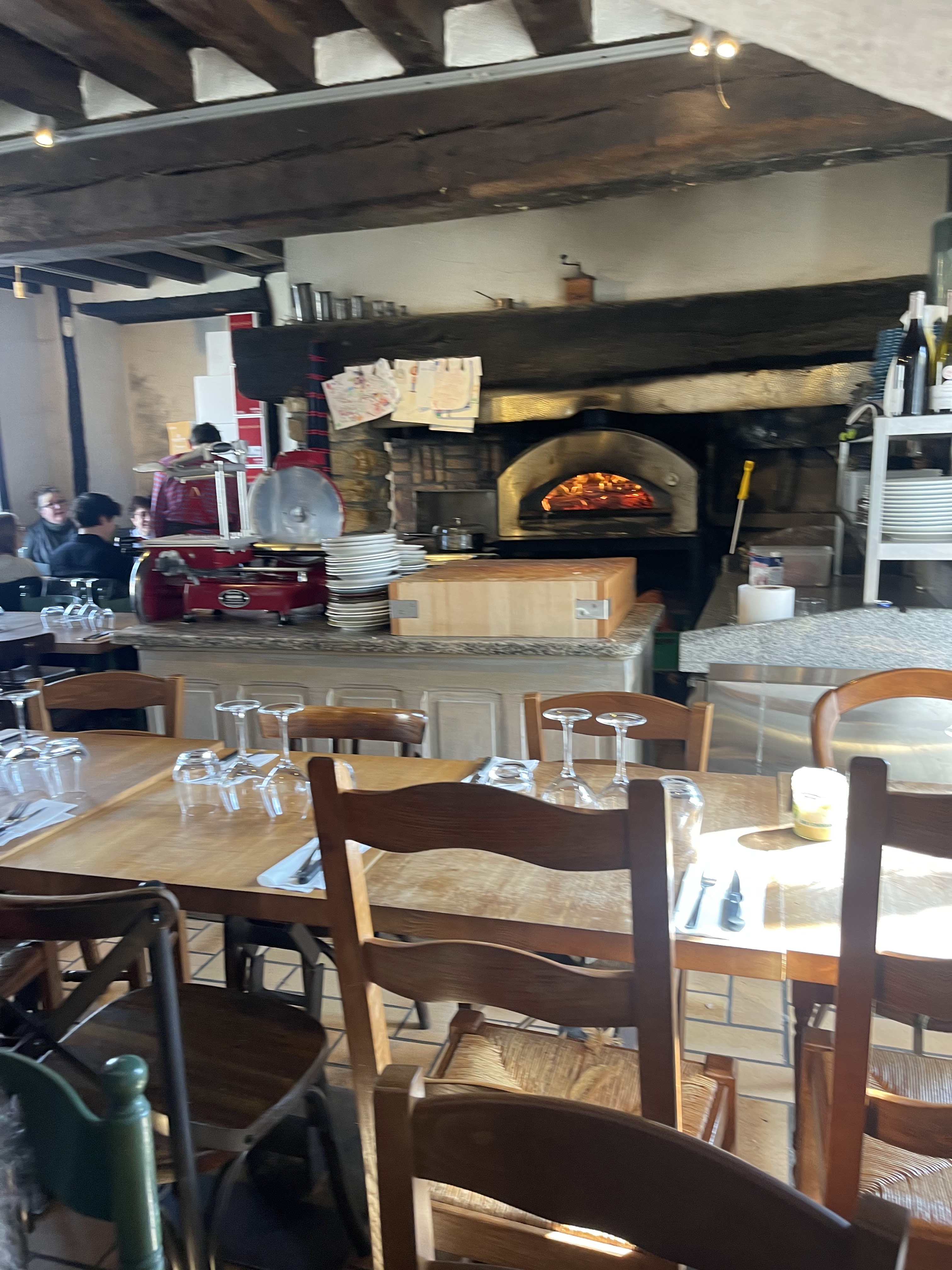Un jour j’irais là bas … Sans réservation mais pas loin de ce magnifique village de Bourdonné et grâce à un alignement des planètes un peu en avance et/ou d’une force mystique un jeune serveur nous dégote 2 places dans une grande tablée ! Dès que l’on passe la porte on ressent la chance que l’on a eu ! Erwan est là devant son four et derrière sa trancheuse les serveurs sont au petit soin malgré un restaurant bien rempli . Nous prenons le temps pour choisir ce que l’on va manger en patientant bière locale jambon ibérique et foie gras maison un délice ! Puis les plats commandés nous allons nous perdre dans cette magnifique cave où nous pouvons sélectionner nous même notre vin. Le paradis !! Un vaste choix s’offre à nous le choix je laisse à mon frère qui est bien plus qualifié le soin de choisir notre cru. Fleur de By medoc de 2019 accompagnera notre entrecôte et andouillette cuit au feu de bois et comme nous étions sûrement les derniers plats à être pris Miracle nous sommes servis par Erwan en personne ! Un régal une viande tendre et cuite à la perfection et une andouillette goutu accompagnée de ses pommes de terre au four. Pour le sel et le pain nos voisins de table sont très serviable et partageons ensemble nos mets et vin au détour de conversations très agréable! Comme beaucoup de personnes nous avions vu la vidéo d’Emmanuelle Jarry et nous étions promis qu’un jour nous passerions la porte de ce restaurant et ce fût exaucé à 10 jours du départ d’Erwan dans une autre région. Merci la vie ! Merci à Erwan pour ton accueil ,ta cuisine d’essayer de faire le métier de restaurateur ,de ta réussite ,de ta simplicité et de ses quelques mots échangés à table avant que tu ailles te reposer. Bonne route pour tes nouvelles aventures (on est pas inquiets) Les grenoblois qui t’apporteront de la Chartreuse en Bretagne car oui on ira aussi la bas !