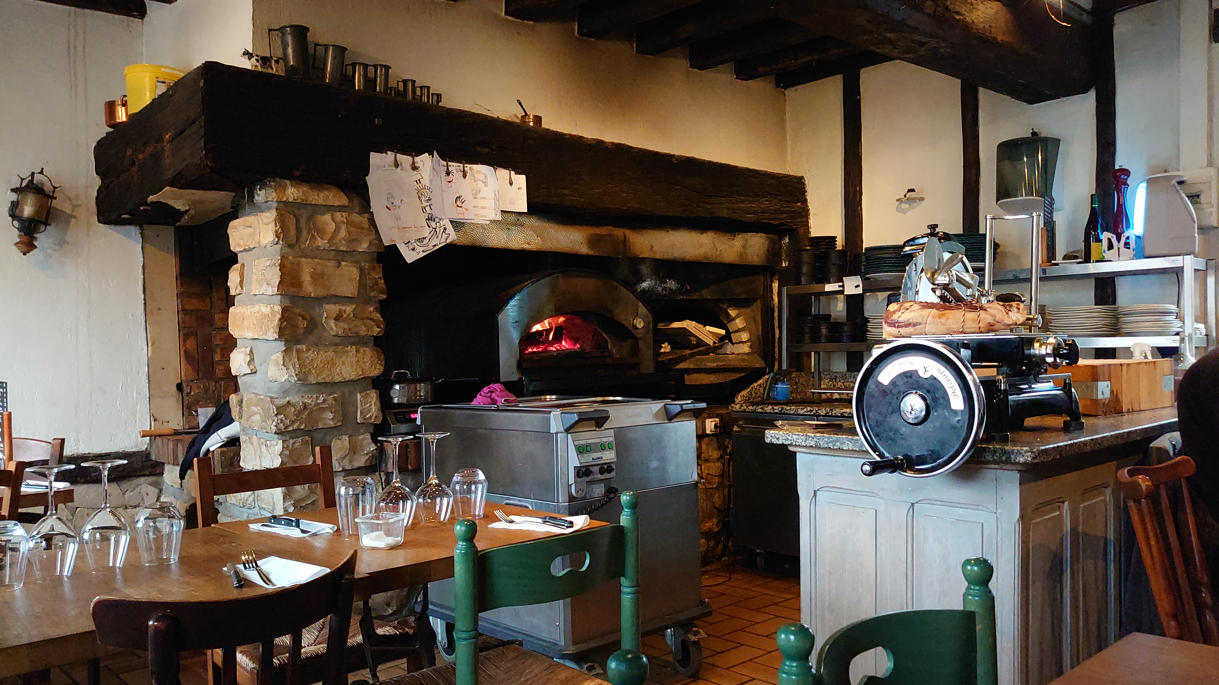 Convivialité à l'ancienne ! Cuisine extraordinairement bonne aux feux de bois . Choix du vin dans une cave immense... Prix très très raisonnable.