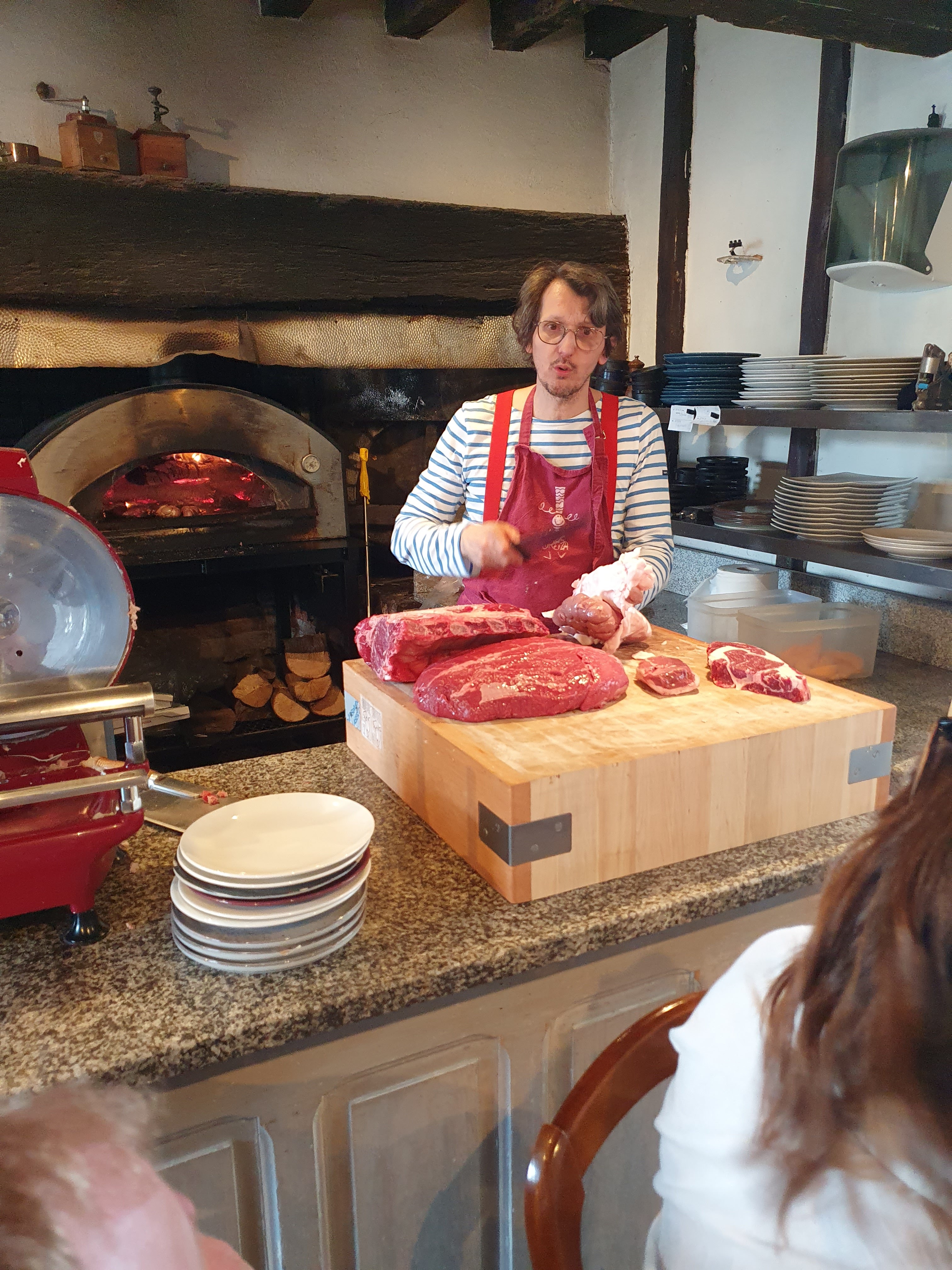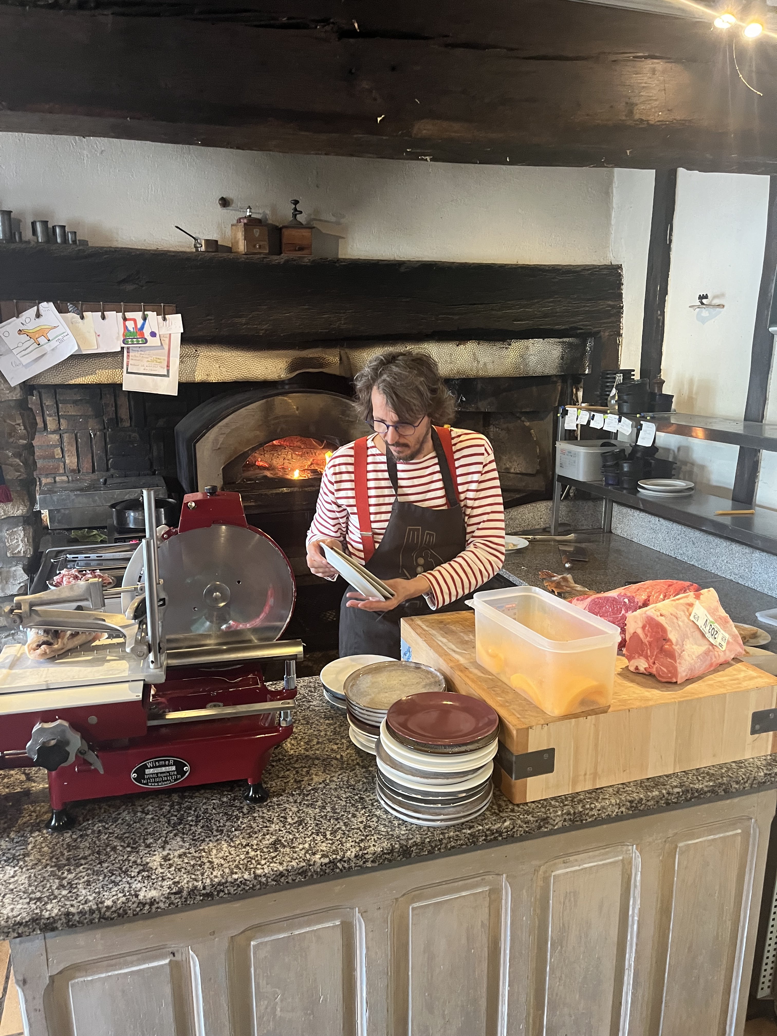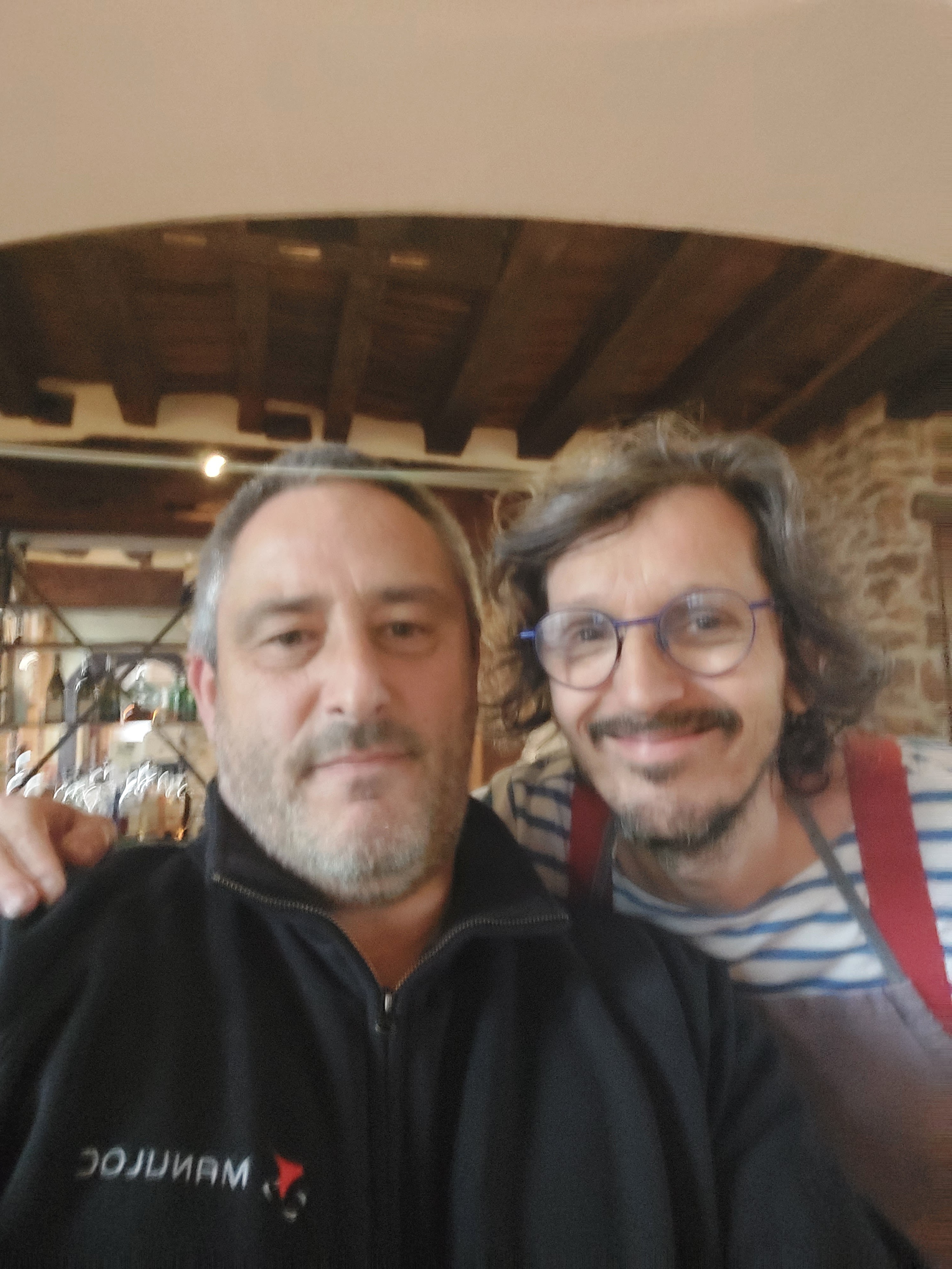 A la bonne franquette. J ai adoré, Erwan est un personnage à lui tout seul. On va chercher sa bouteille de vin à la cave (beaucoup de choix) la nourriture est cuite au feu de bois devant nous.